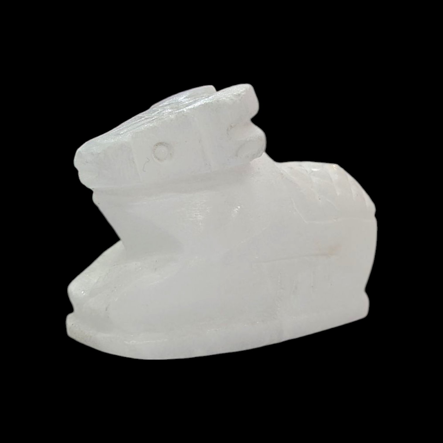 DIMENSIONS: White marble Nandi statue measuring 1.8 inches in height, and 2.4 inches long, perfect for home shrines and temple altars.