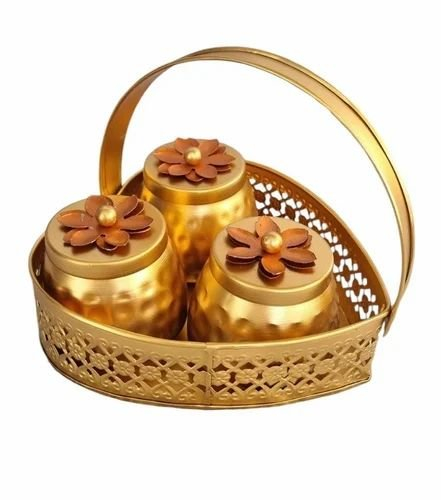 Elevate your home décor with stylish 3 Jars with a matching heart shaped tray for a perfect Diwali gift. These Metal jars with tray set is perfect for adding a festive charm to your kitchen counter, dining table, or as a house warming gift.