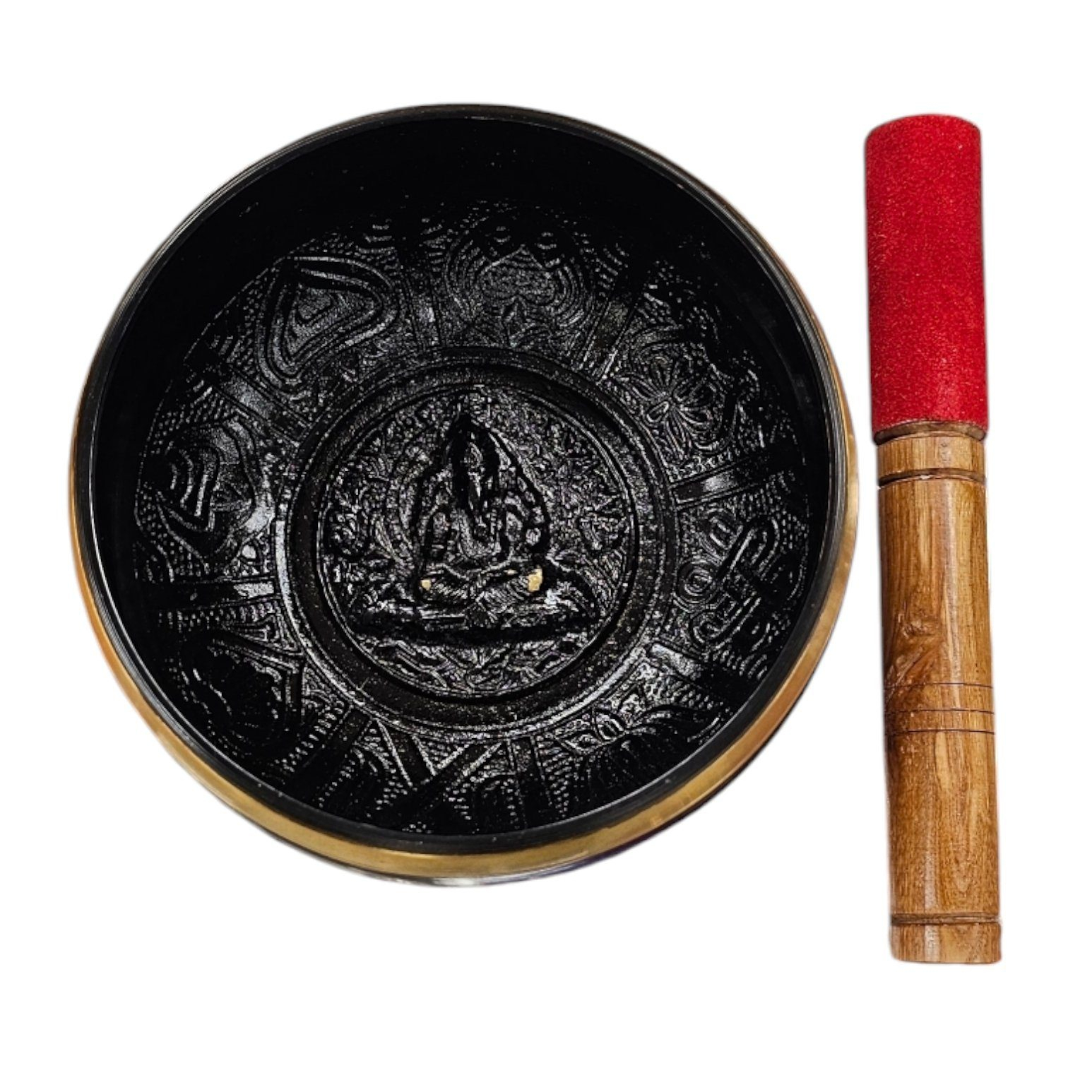 6 inch – Brass Singing Bowl Set- Ganesha – Black | Authentic Tibetan Singing Bowl set