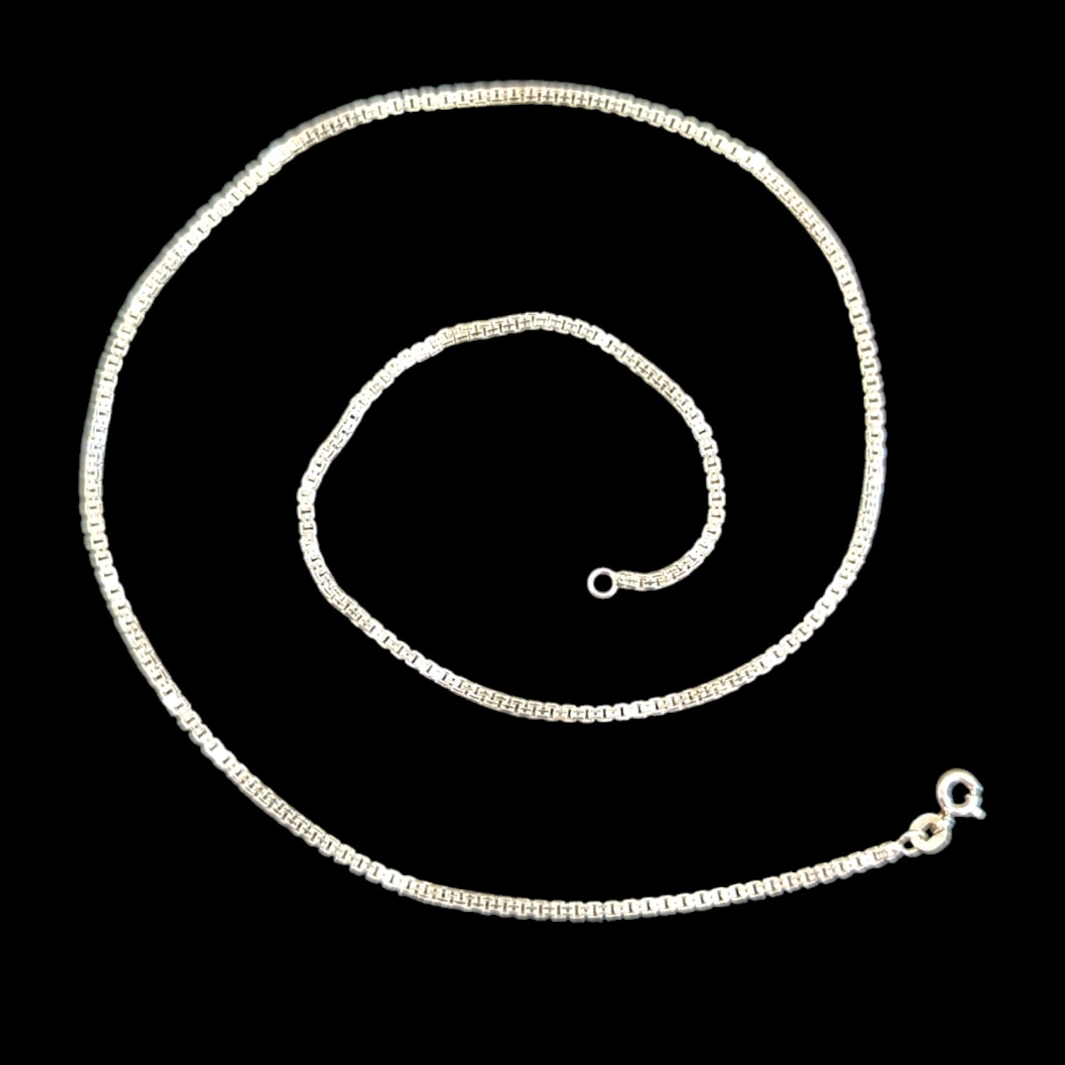 925 STERLING SILVER VENICE BOX CHAIN – Crafted with care, this solid 1 mm Venice box chain has a highly polished finish, making it an elegant yet eye-catching piece. Precisely connected links are designed to reduce tangles, ensuring exceptional quality and resistance to tarnishing. Our chain necklace for women and men is made to last and be enjoyed for years.