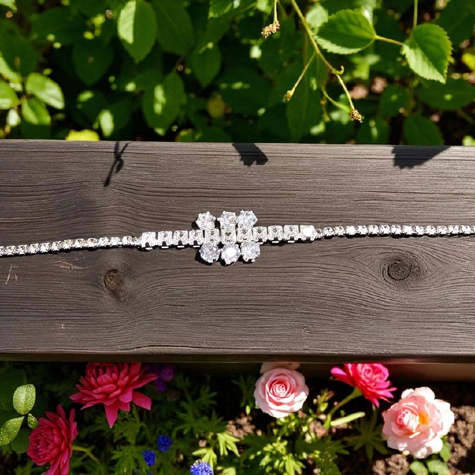 Stylish AD stone slim bracelet – Silver Flower | Gift for her