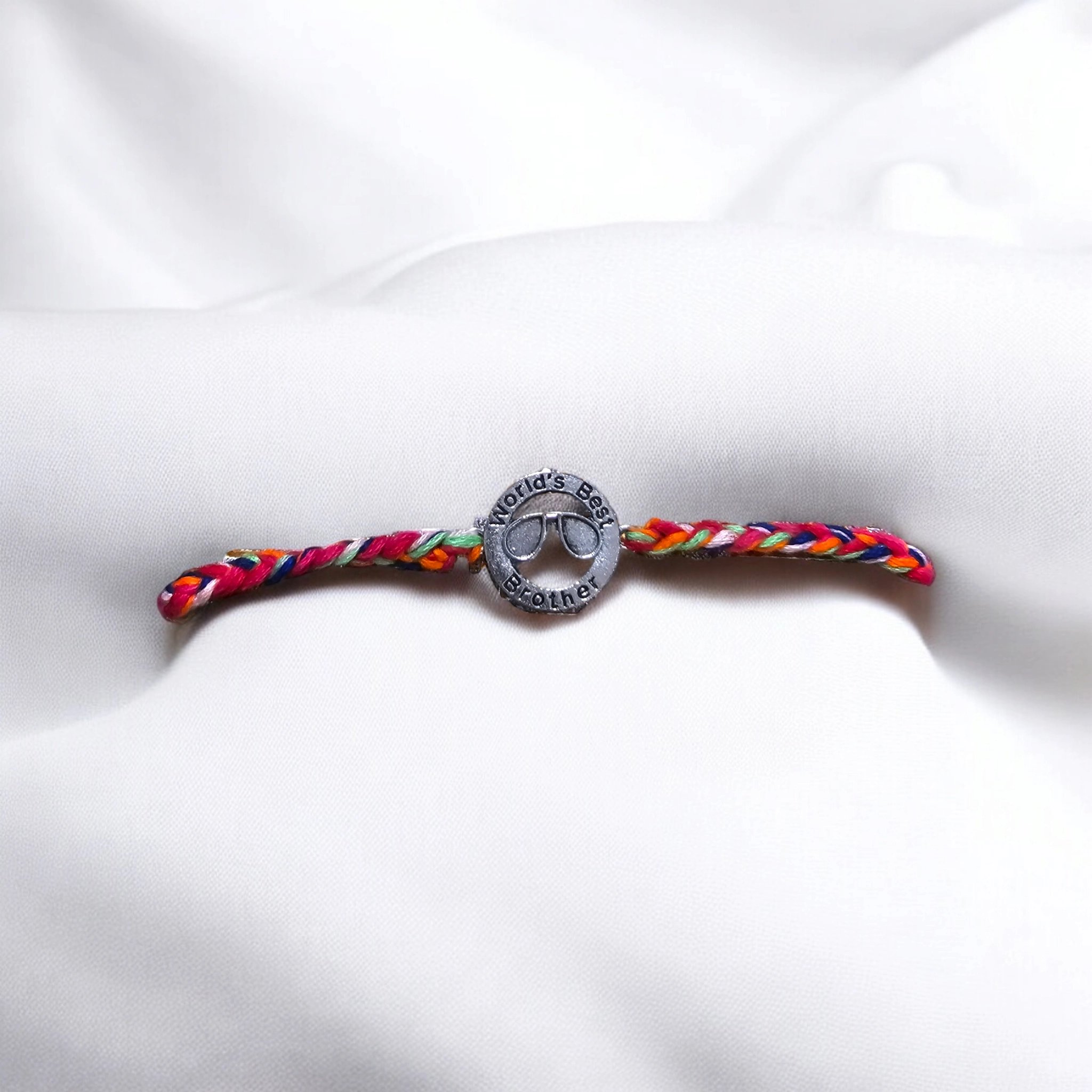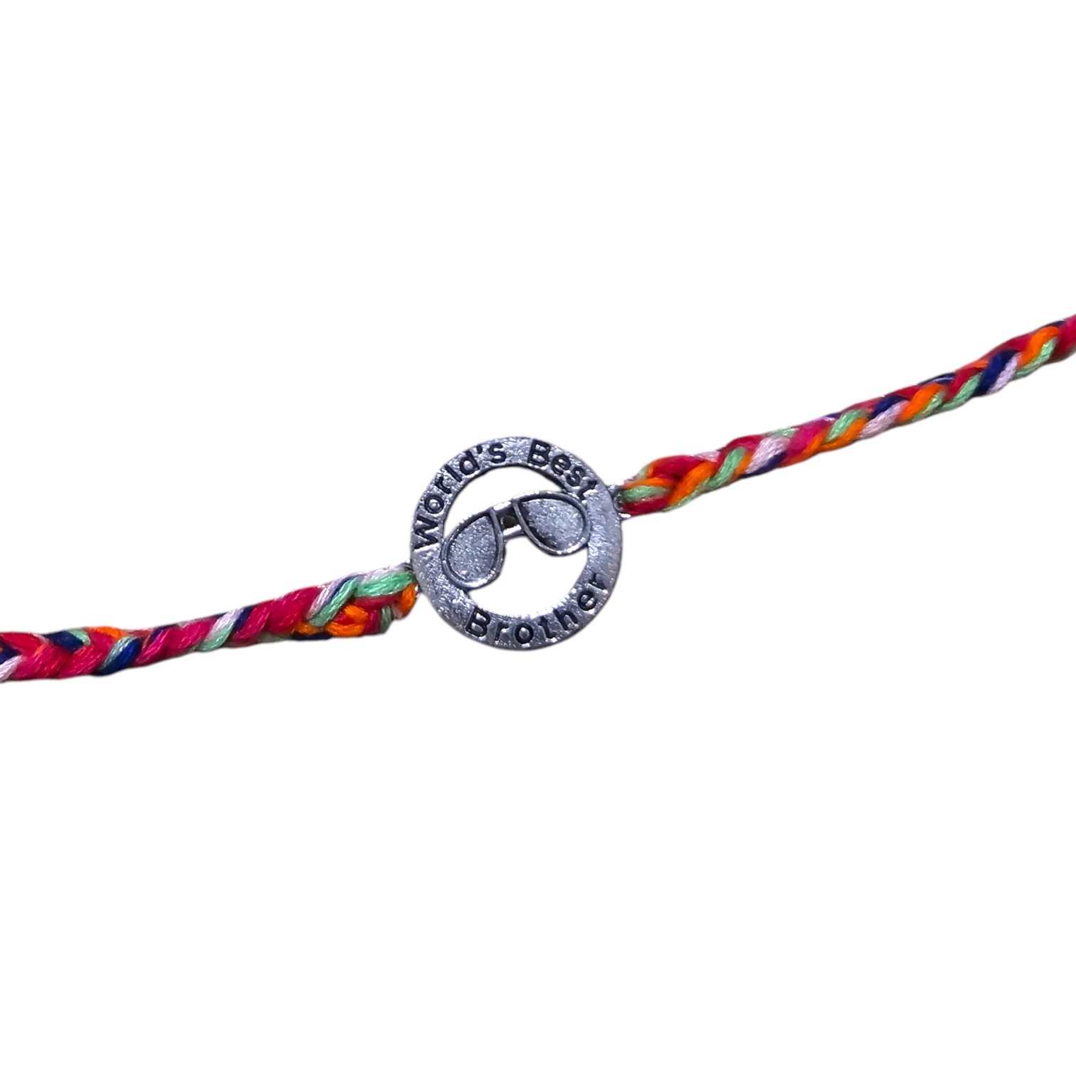 Colorful knotted thread Rakhi with ‘World’s Best Brother’ emblem