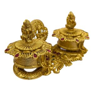 Brass kumkum box is a traditional container used to hold kumkum, a red powder made from turmeric or saffron. Pack of 2