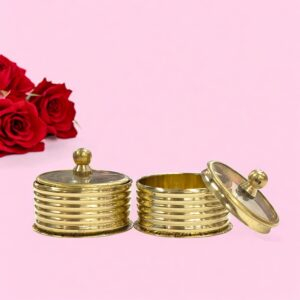 Brass kumkum box is a traditional container used to hold kumkum, a red powder made from turmeric or saffron. Pack of 2