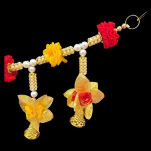 Handmade with premium-quality, durable materials, this toran is easy to hang and reusable, ensuring it remains fresh-looking for years to come. The bright yellow and orange flowers, combined with green leaves and decorative beads, create a traditional yet elegant look, making it ideal for Diwali and other Indian festivals.