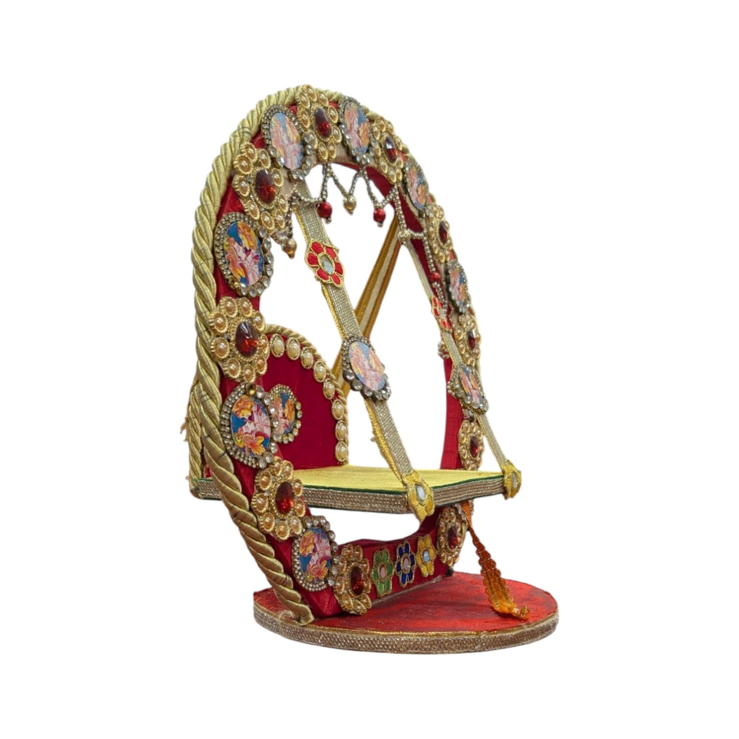 Luxurious Comfort: Soft velvet or suede lining cushions the seat, offering a plush throne for Laddu Gopal while adding a touch of opulence.
