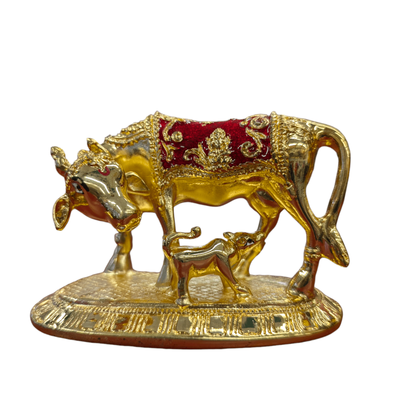 This Kamdhenu Cow with calf Showpieces Placed in North East Direction of Drawing, Living or Pooja Room ,it brings Wealth ,Health ,Peace and Happiness. This is a very popular gift item for any occasion.