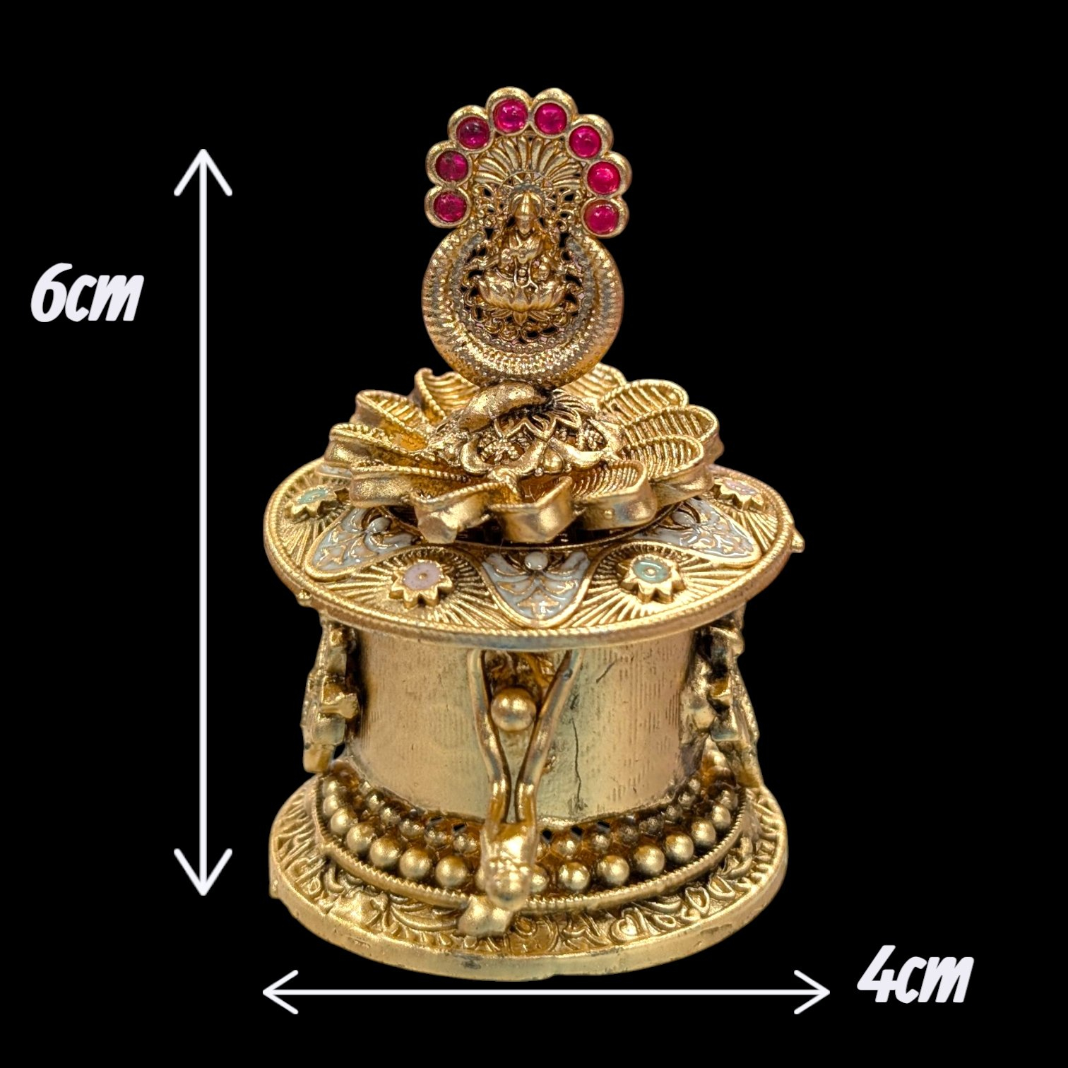 Symbolic Significance: Representing divine love, this vermilion box serves as a cherished accessory for Hindu rituals and ceremonies.