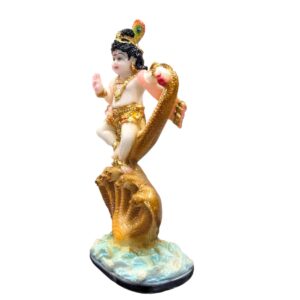 - Design: The statue features Lord Krishna in traditional attire with a vibrant yellow dhoti, sitting on a tree stump. The peacock feather on his turban adds a touch of authenticity and cultural richness.
