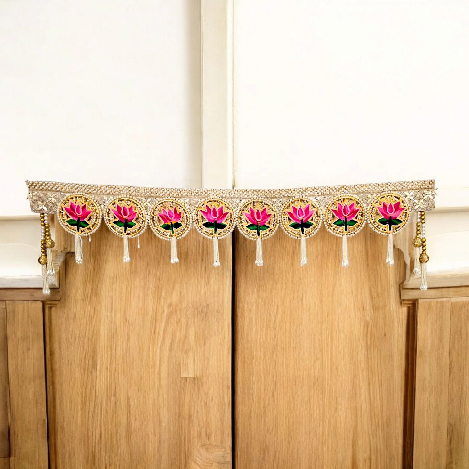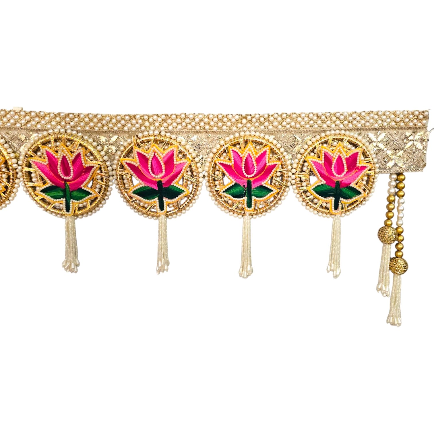 Get this beautiful Lotus toran with colorful Lotus motif created with small moti /pot beads and flower motif with moti tussles for your home décor this Diwali. This Toran for Diwali is a vibrant and decorative door hanging that exudes the spirit of the festival.