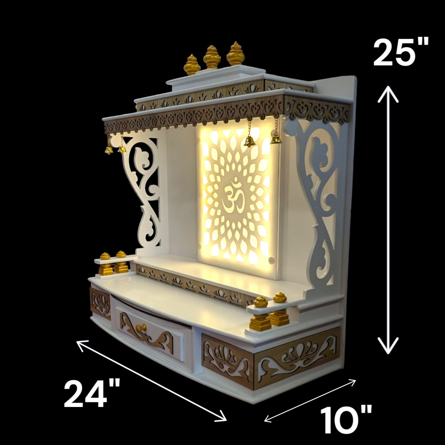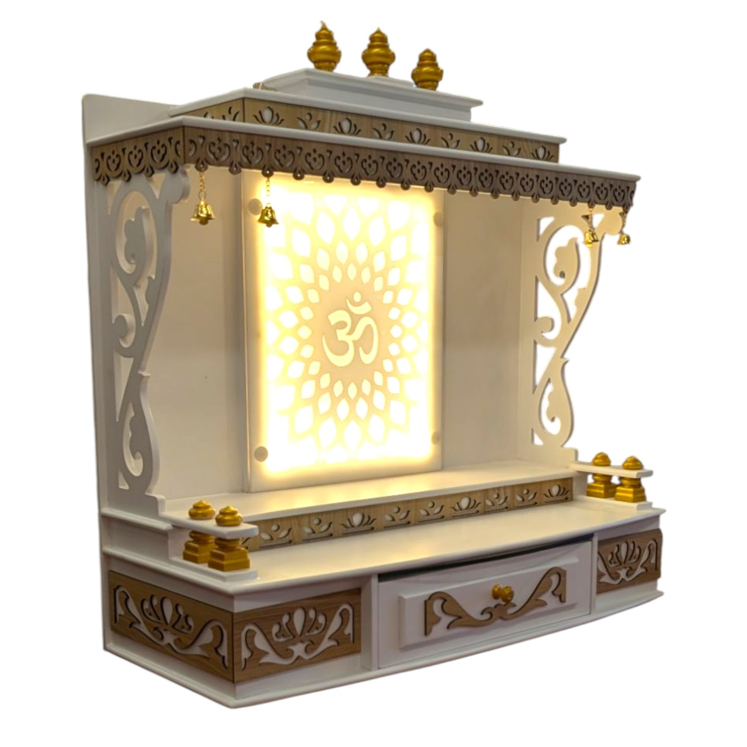 MDF Pooja Mandir for home- 24i x 25i x 10i | White Acrylic OM Led Backlit Home Temple