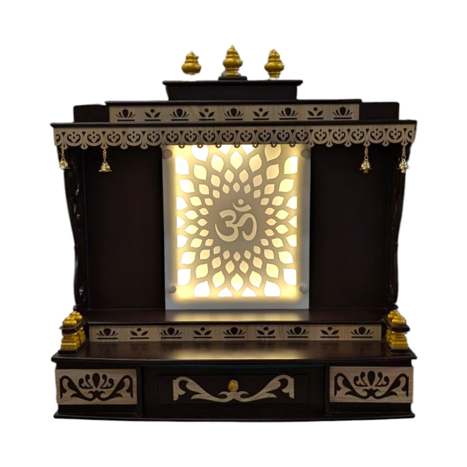MDF Pooja Mandir for home- 24i x 25i x 10i | Acrylic OM Led Backlit Home Temple