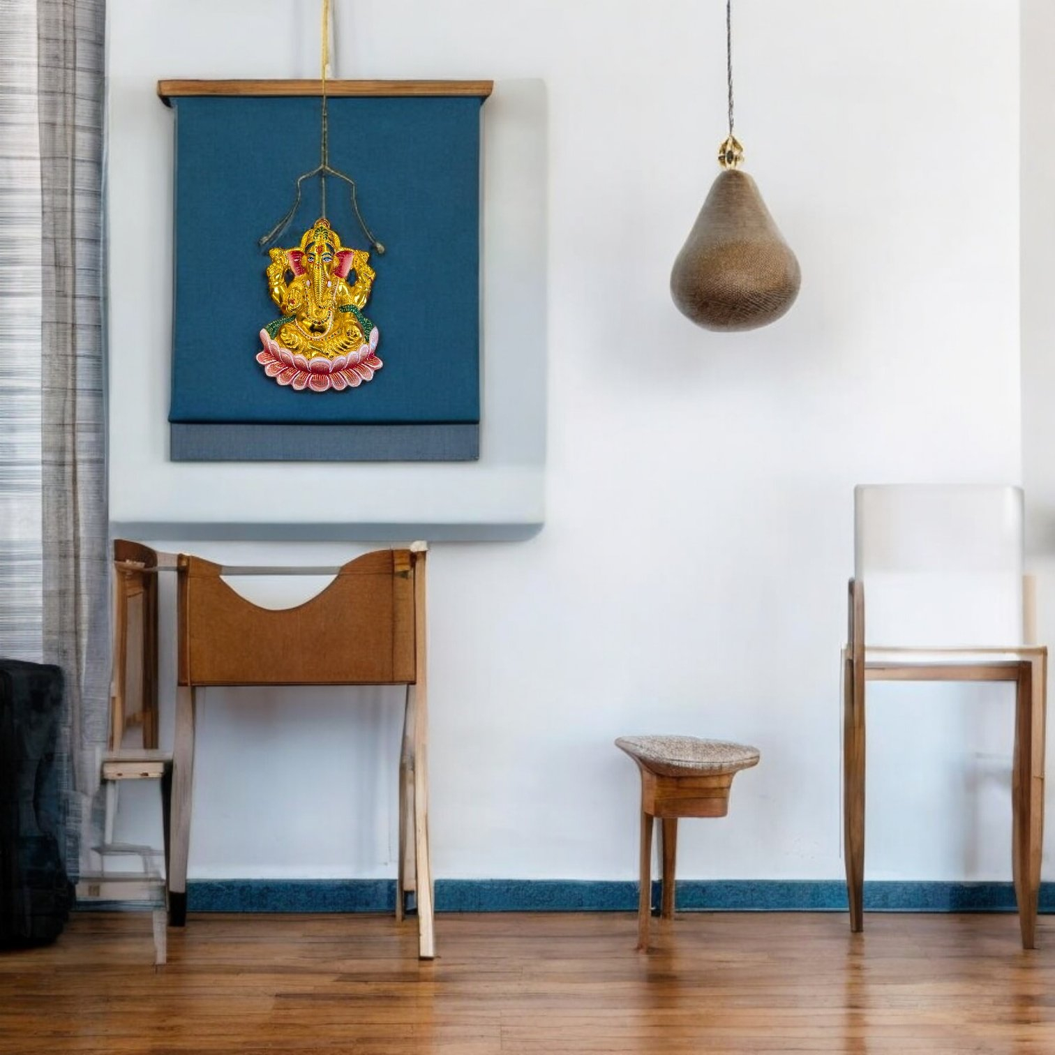 A beautiful and mesmerizing Ganesha wall hanging 9″ high approx 7″ wide. The alloy metal piece is gold plated with meenakari work.
