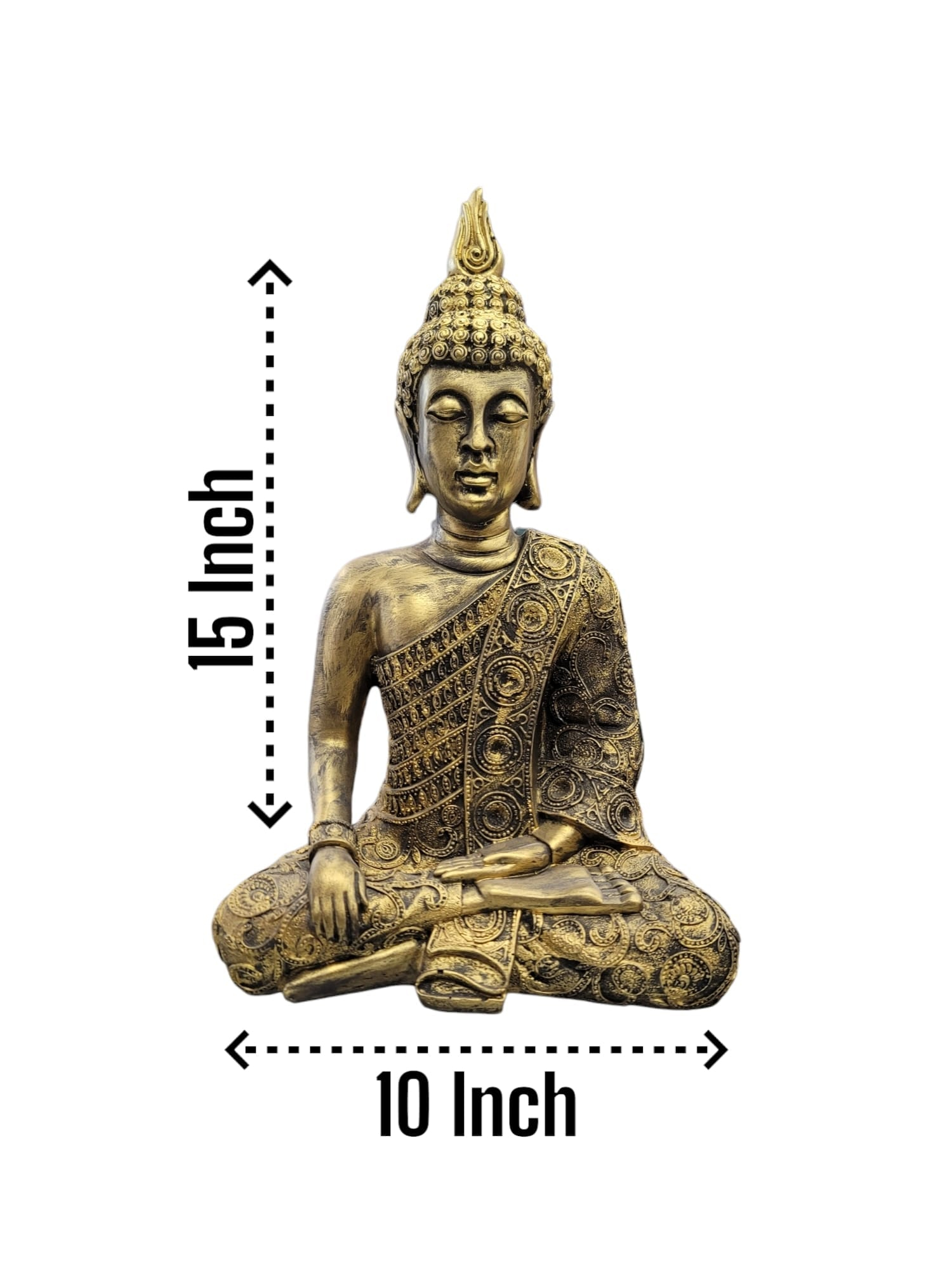 A Large Buddha statue is an elegant way to inspire peace and serenity for your home. Get this large Golden antique 15 Inch high Buddha Idol made out of Polystone for your home or for gift.