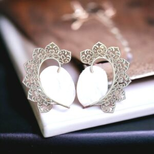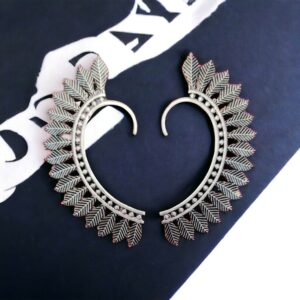showcases intricate detailing, reflecting the skilled artistry . Ruby-colored crystals, add a touch of regal sophistication and vibrancy to the design.. The Jhumki’s compliment the neckpiece in a perfect way to make it a versatile choice for all your ethnic wears.