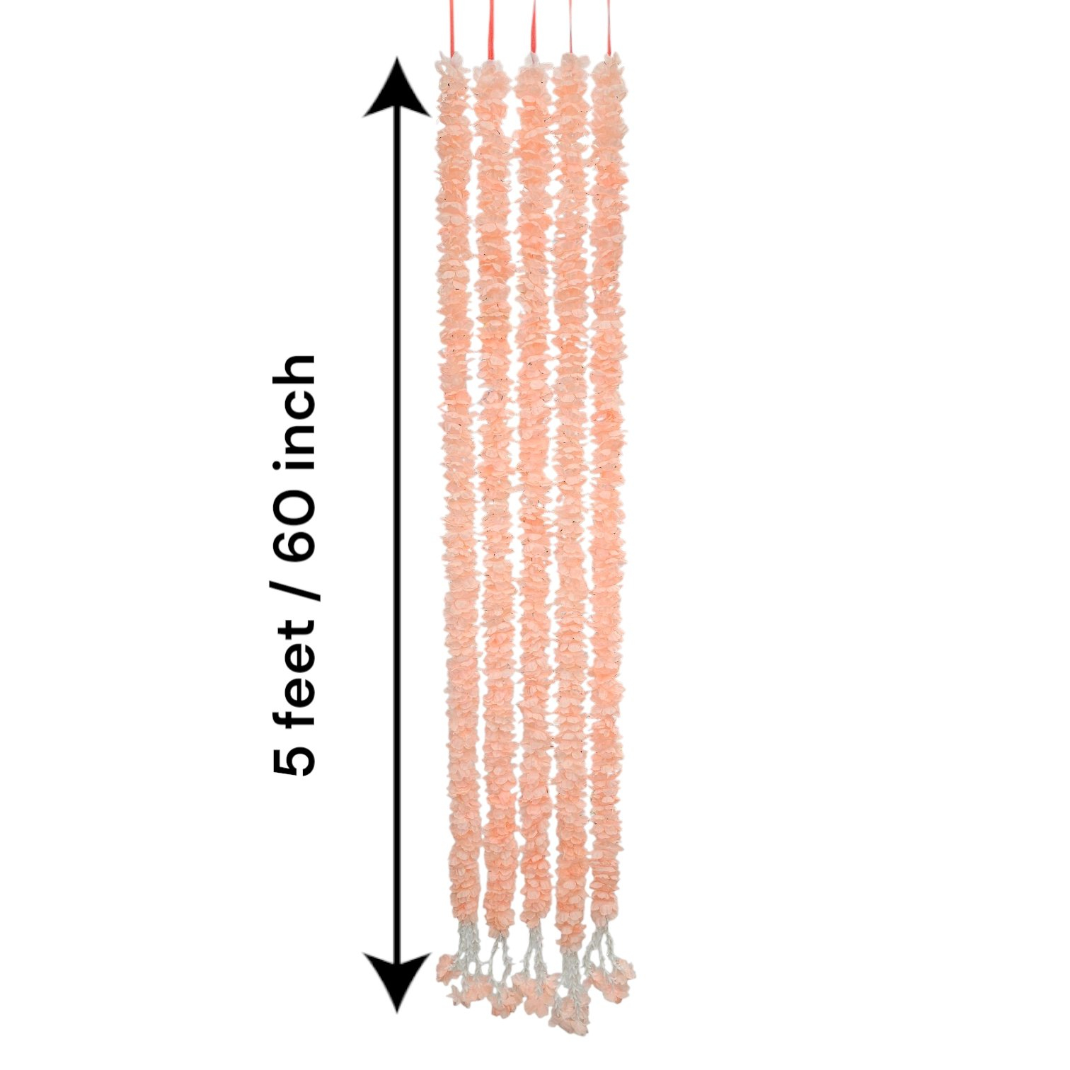 - Each string is appox 60 inches long , with heavy flowers. Unlike other vendors in the market our artificial flowers strings stand out with quality.