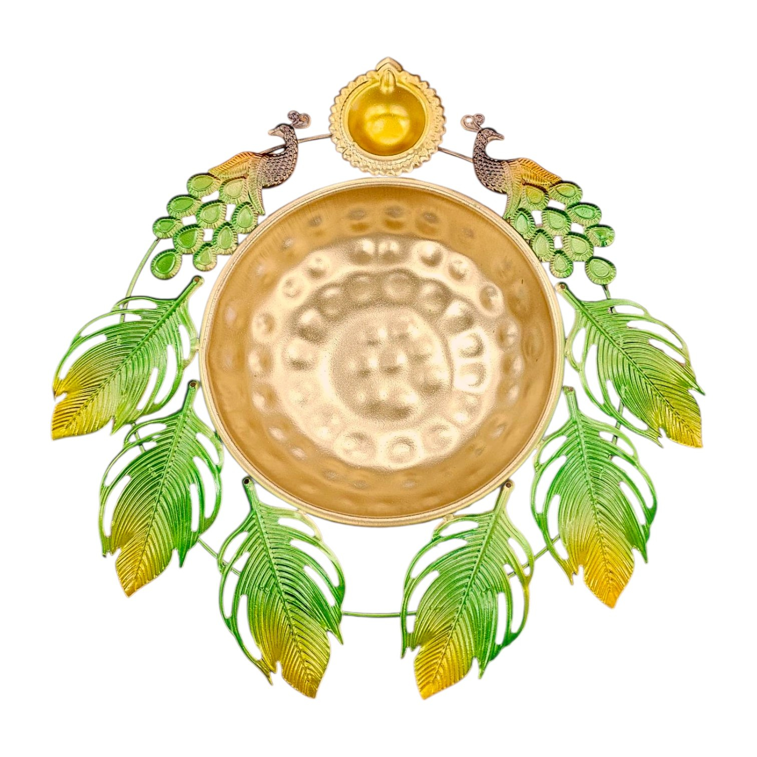 Enhance your décor with this Peacock Urli set with diya. Golden urli bowls for flowers, candles & diyas. Perfect for Diwali, Christmas, & weddings. Hold floating diyas, tea lights, or flowers. Creates a warm, elegant ambiance. Fast shipping in USA / Canada.
