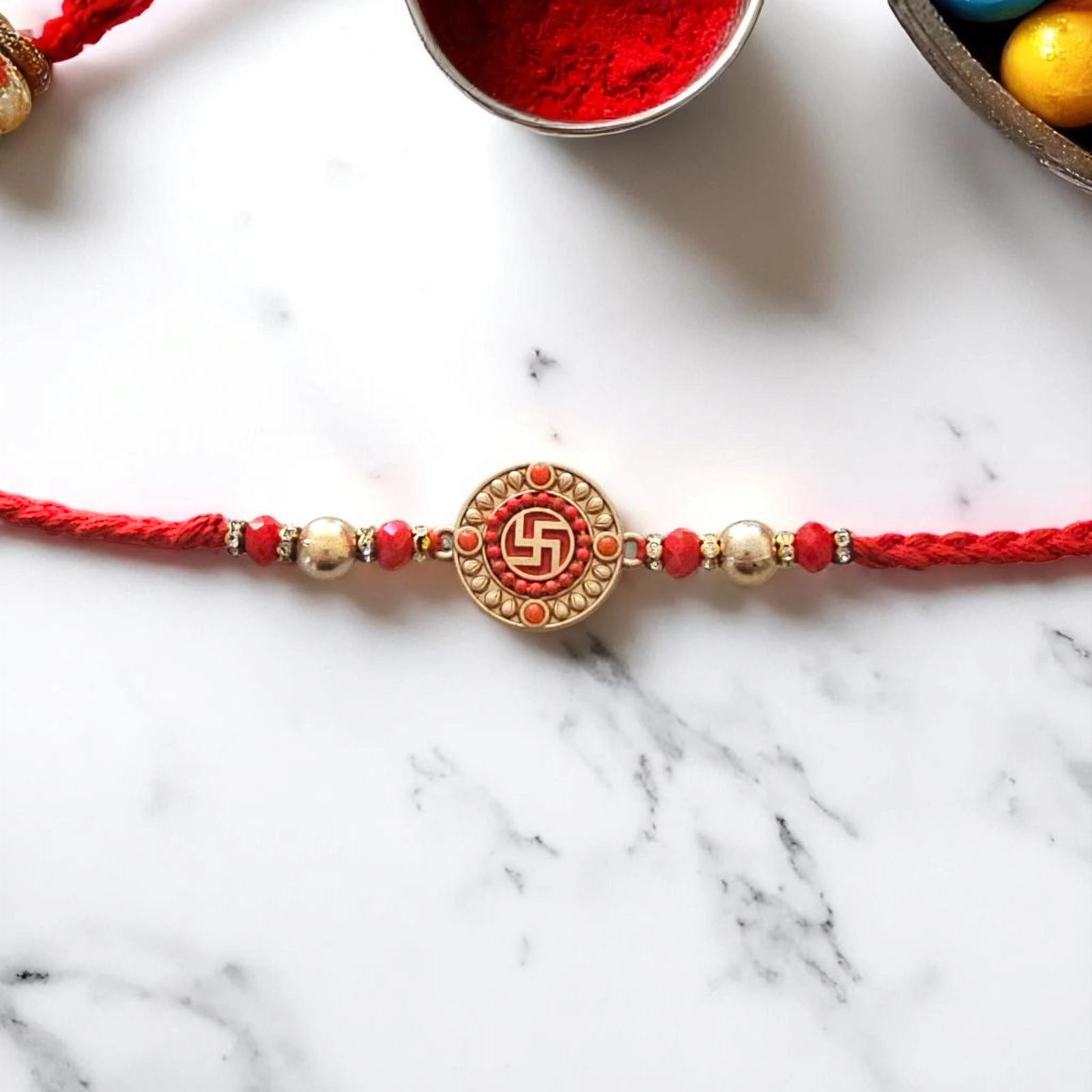 Looking for the Perfect Rakhi to celebrate the bond of love and affection with your siblings? Look no further! Our exquisite premium Rakhi with a Swastik emblem is a perfect combination of indulgence and tradition. Order now and make this Rakhi a truly memorable one!