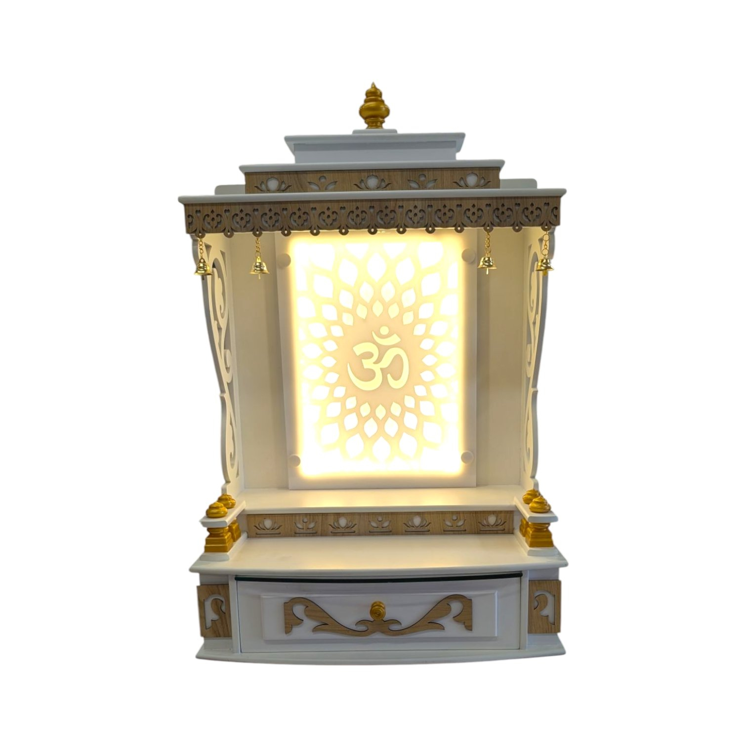 Mdf wooden Puja Mandir for home- 16i x 25i x 10i | White Acrylic OM Led Backlit Panel