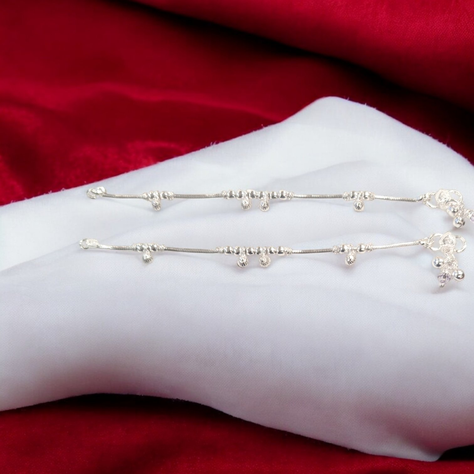 Buy this beautiful pure silver anklet pair, handcrafted with care to bring a touch of tradition to your loved ones. Measuring 6.5 inches in length from end to end including the S hook, these anklets are designed especially for newborns, making them a perfect gift for baby showers, naming ceremonies, or welcoming a new arrival. These are also called as asli chandi ki payal .