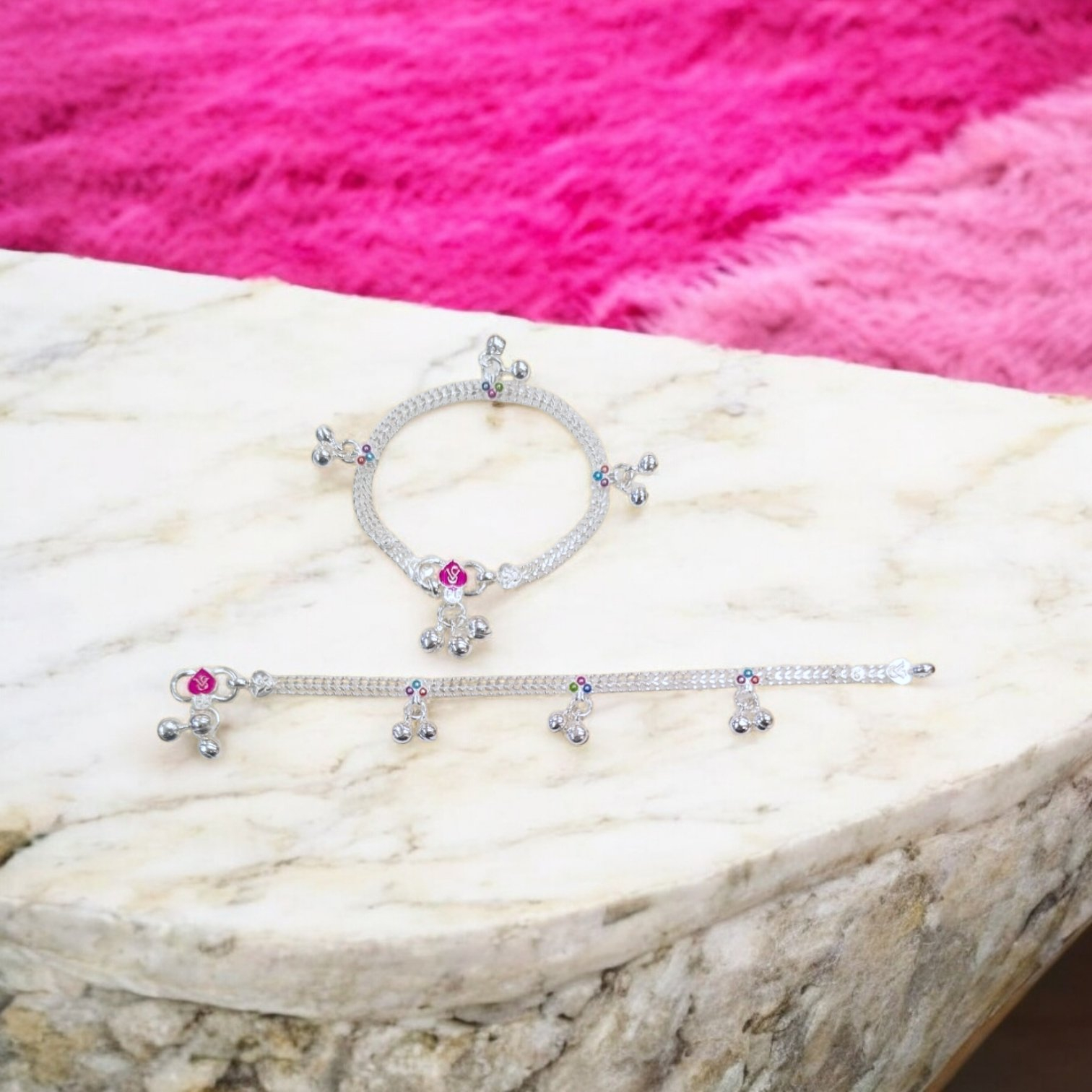 Buy this beautiful pure silver anklet pair, handcrafted with care to bring a touch of tradition to your loved ones. Measuring 6.5 inches in length from end to end including the S hook, these anklets are designed especially for newborns, making them a perfect gift for baby showers, naming ceremonies, or welcoming a new arrival. These are also called as asli chandi ki payal .