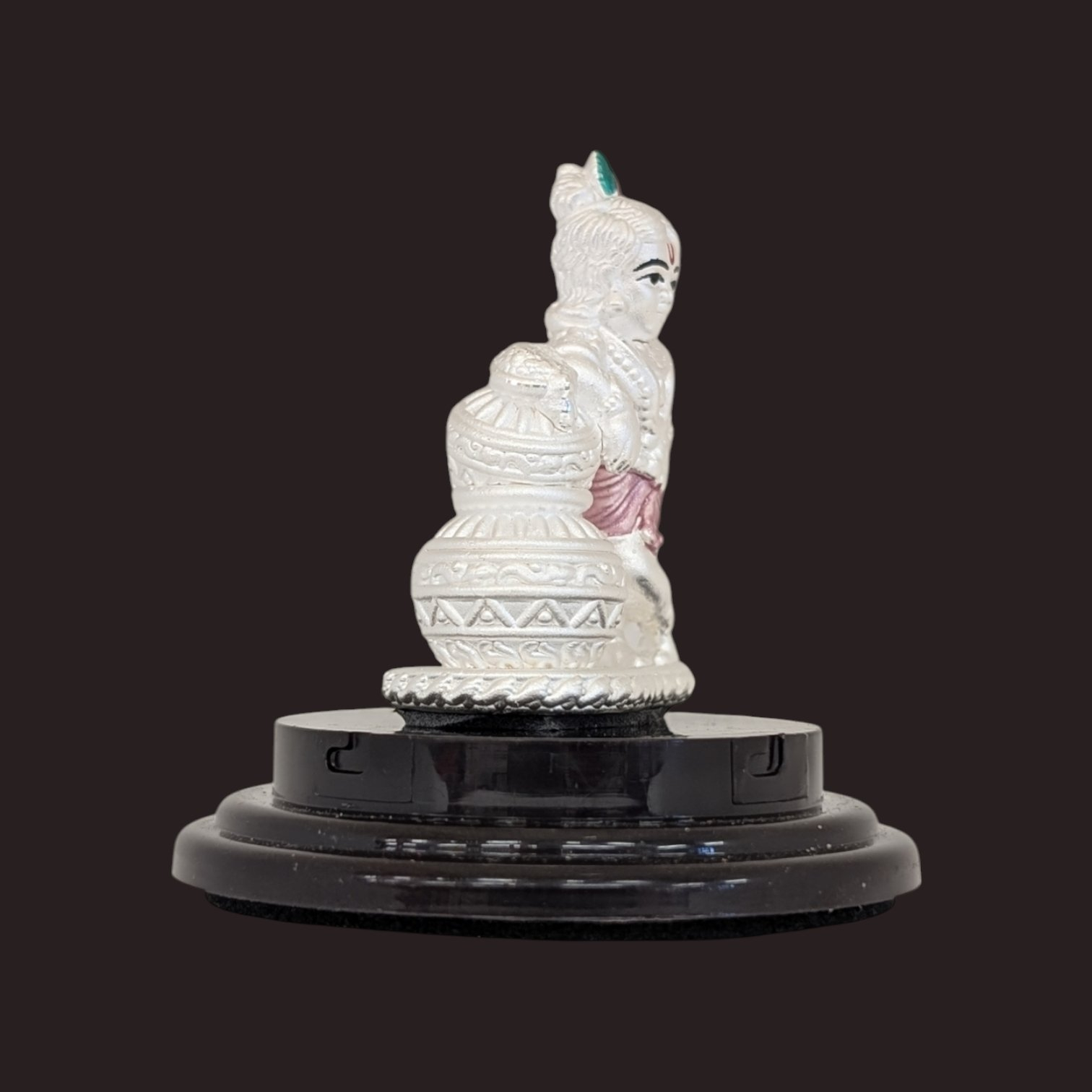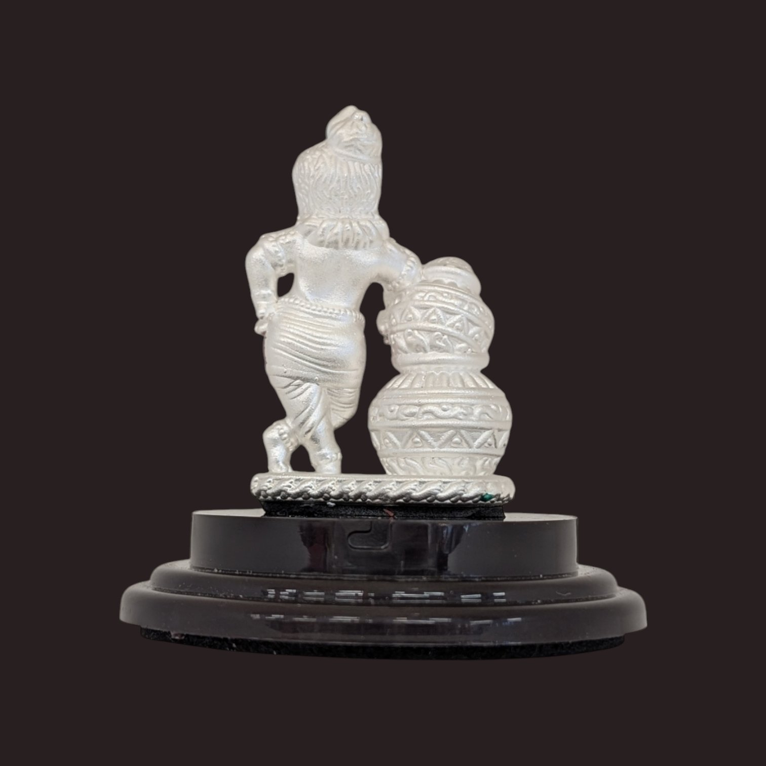 Whether you want to place it on your car dashboard or adorn your home, this statue is versatile enough to fit in with any décor theme. This beautifully crafted idol depicts Baby Krishna standing with the butter pot, in exquisite detail.