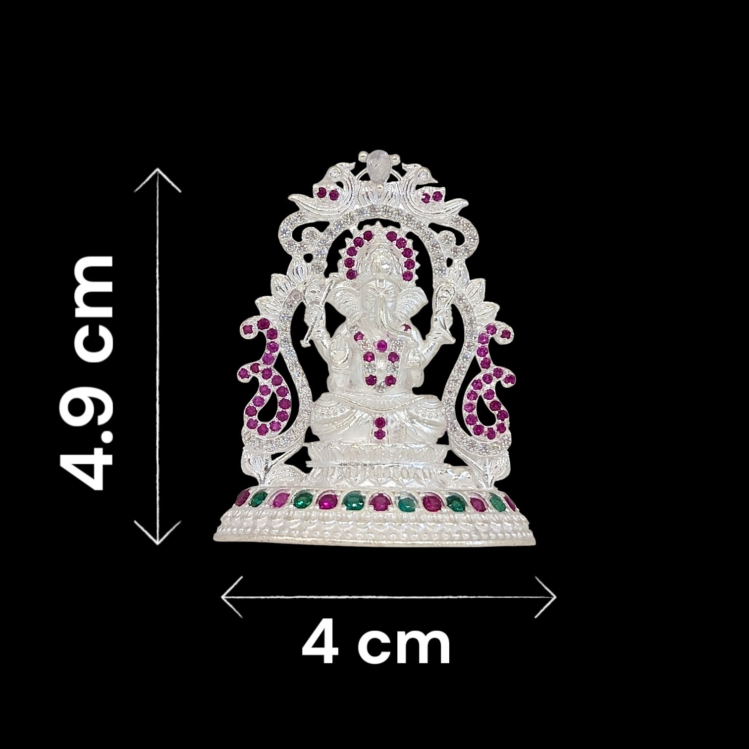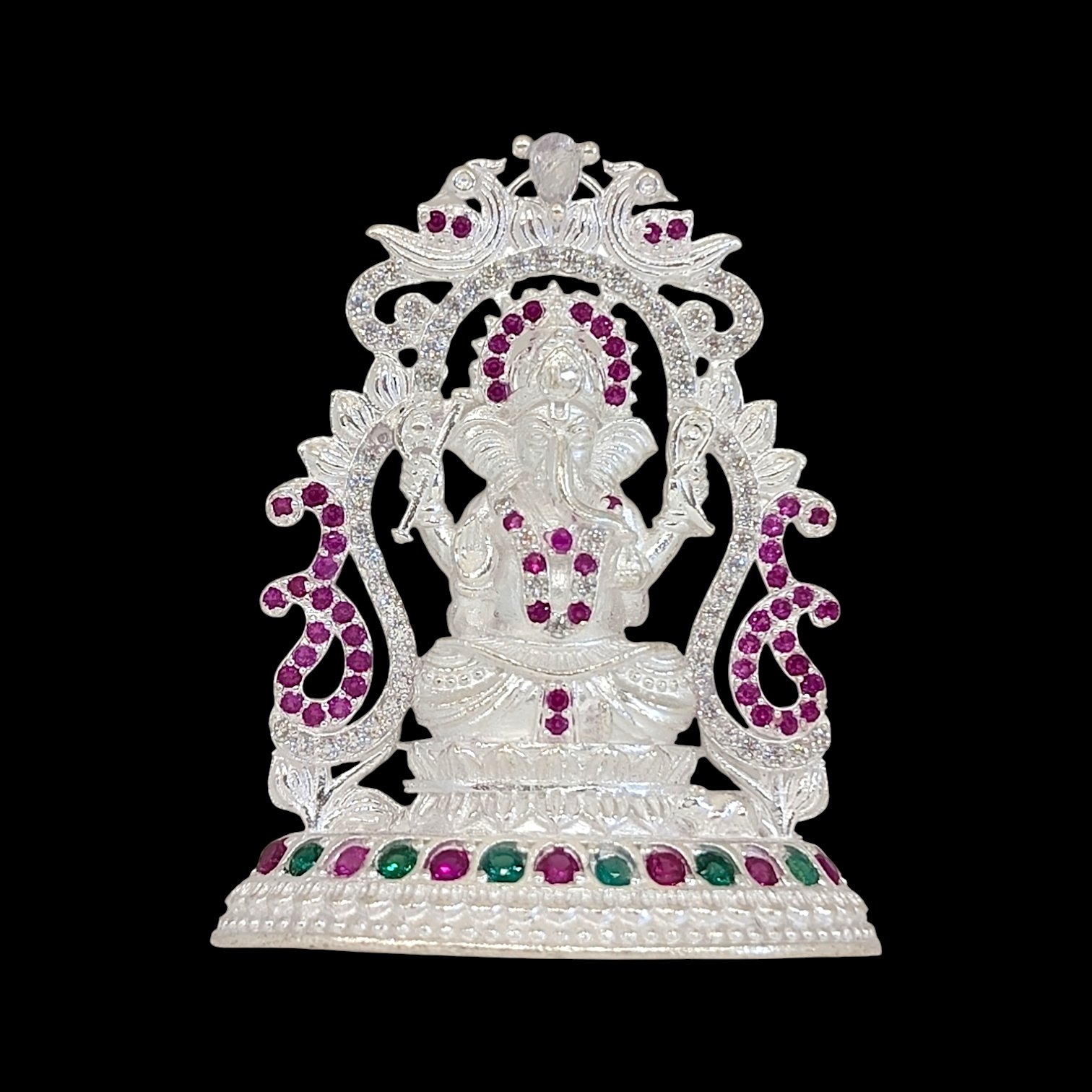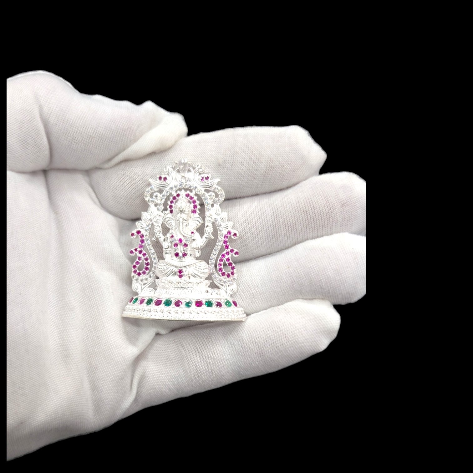 Material : Finely crafted 3D Silver Ganesh statue with with embedded stones for a beautiful finish.