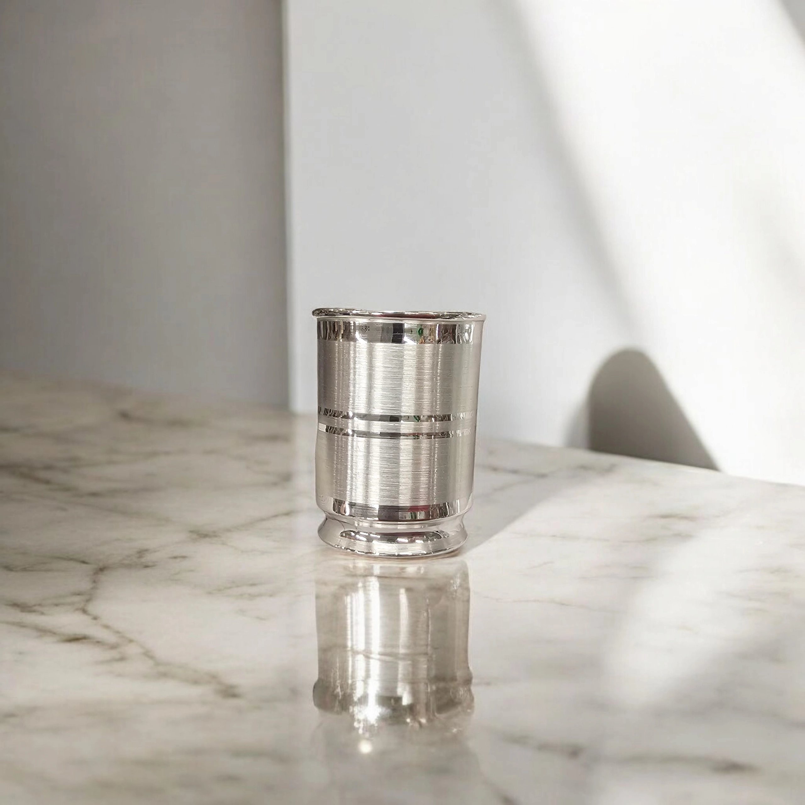 Add a touch of elegance and tradition to your special moments with this Small Pure Silver Glass. Crafted with precision, this glass features a stunning brushed finish.