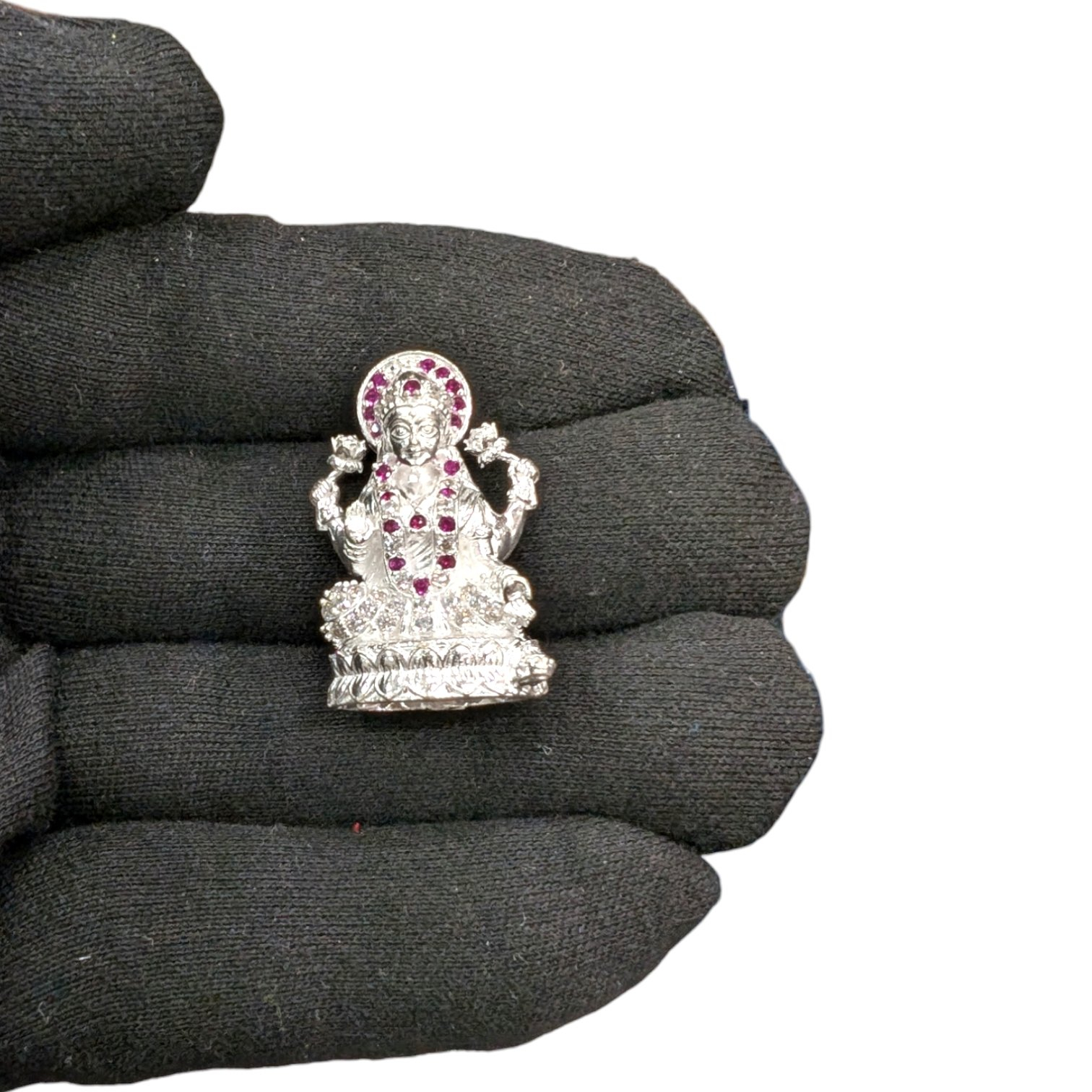 Material : Finely crafted 3D Silver Lakshmi statue with with embedded stones for a beautiful finish.