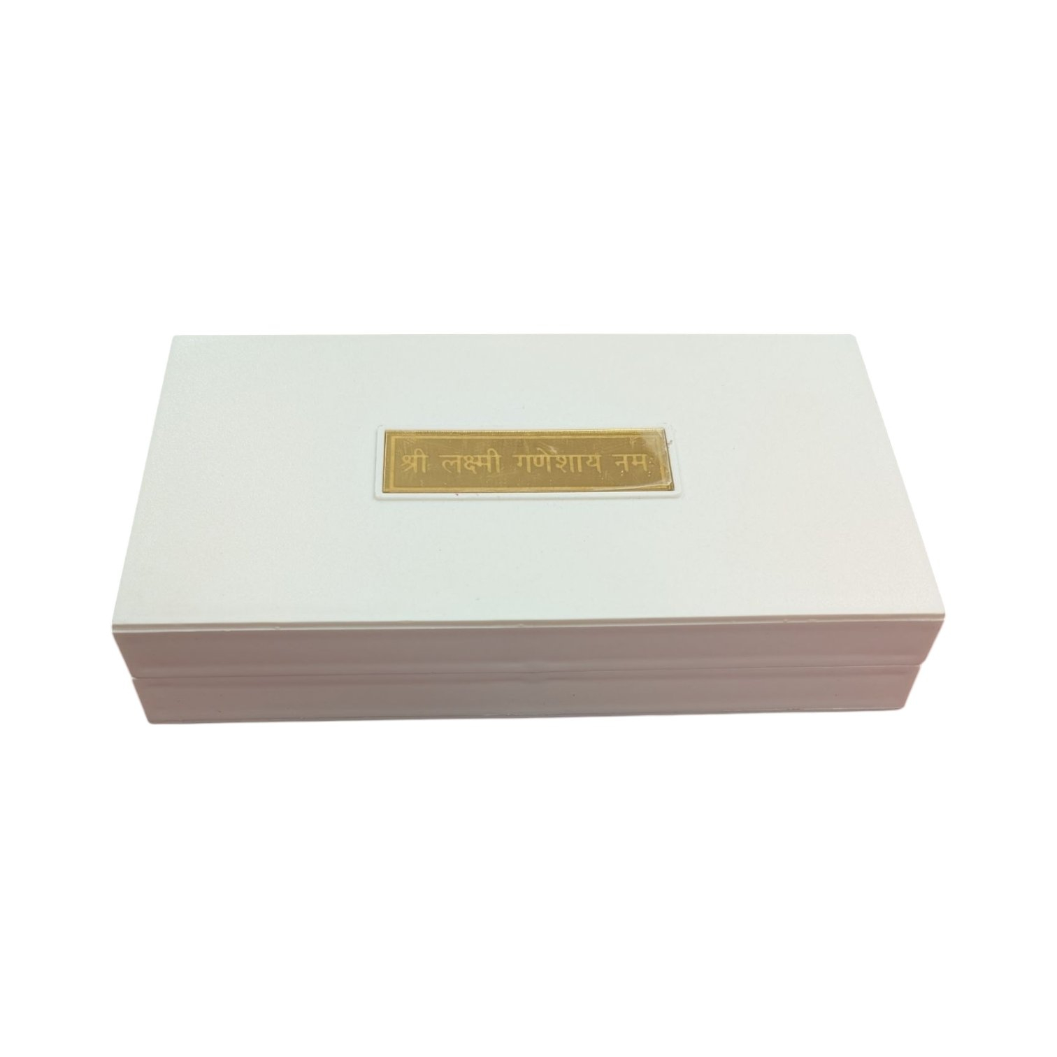 Perfect gift for your own home or friends. This Mesmerizing gift box with a gold plated panel Lakshmi Ganesh. Place this gift box adoringly on your office desk, in your mandir, at your workplace or carry it during travel and seek darshan conveniently.