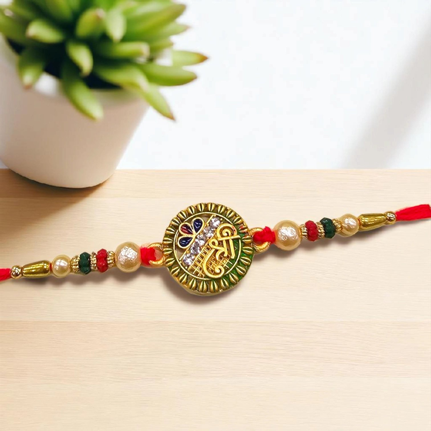 Stylish Shri Rakhi with a Rakhi Greeting Card | Ships in Canada
