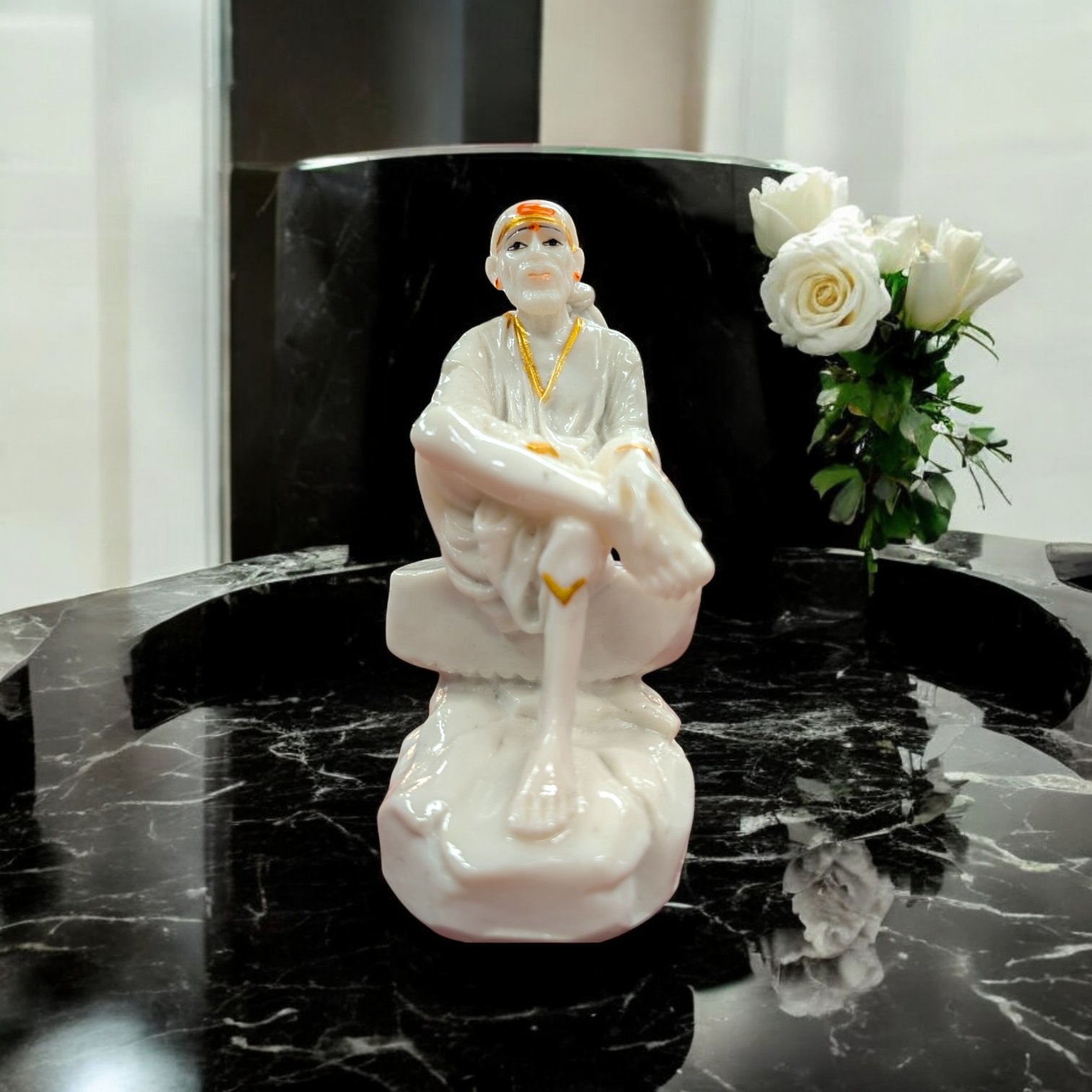 Bring home divine blessings with this exquisitely crafted Shirdi Sai Baba Statue, made from high-quality, durable polyresin. This material not only mimics the timeless elegance of marble but is also lightweight, making it easy to handle and move. Designed for long-lasting beauty, this idol is as strong and durable as real marble, ensuring it retains its charm for years to come.