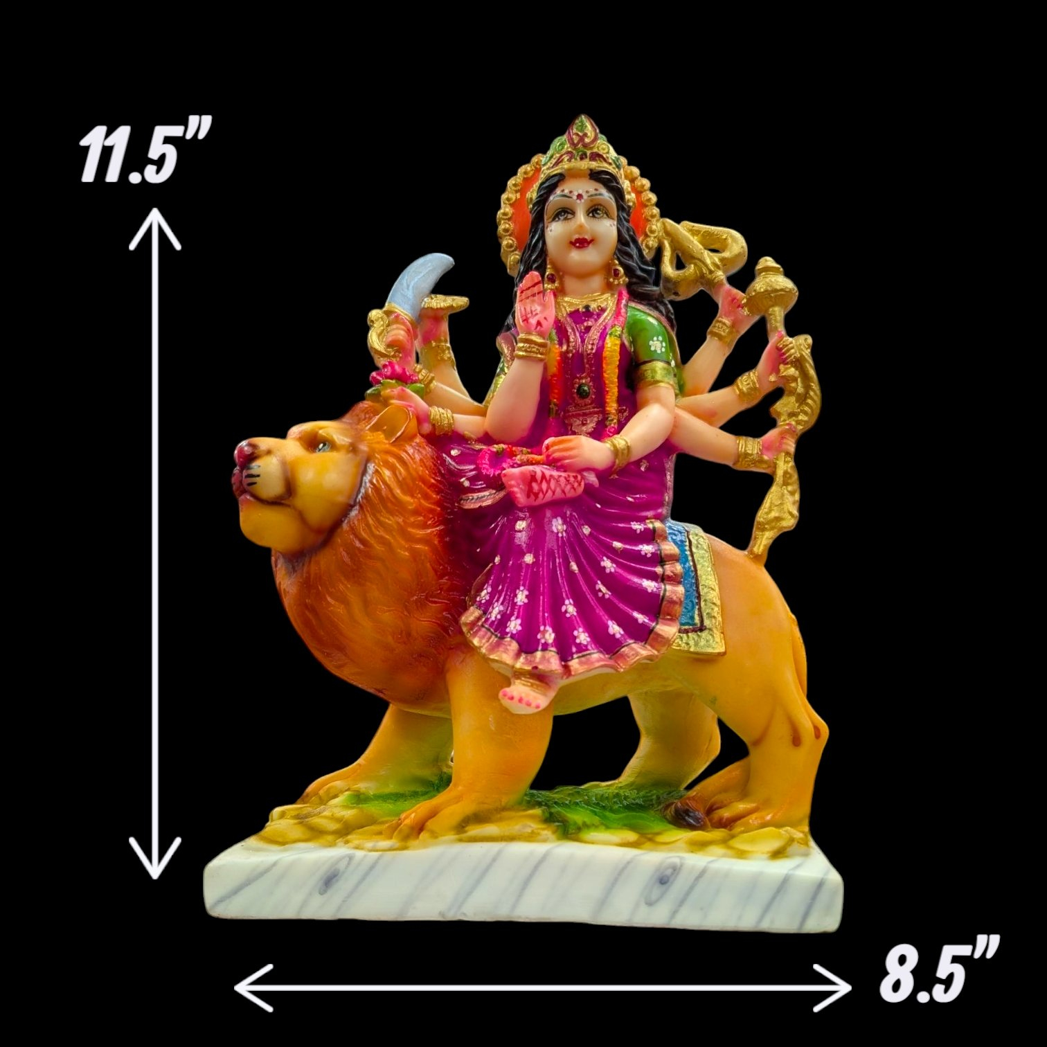 This Sherawali Maa – Jagdambe Maa – Ambe Maa idol depicts the goddess sitting on top of her mount that is Somanandin. The idol features stunning details that are further highlighted by the different Body colored effects created by the contrast between a soothing tiger yellow and a bright red.