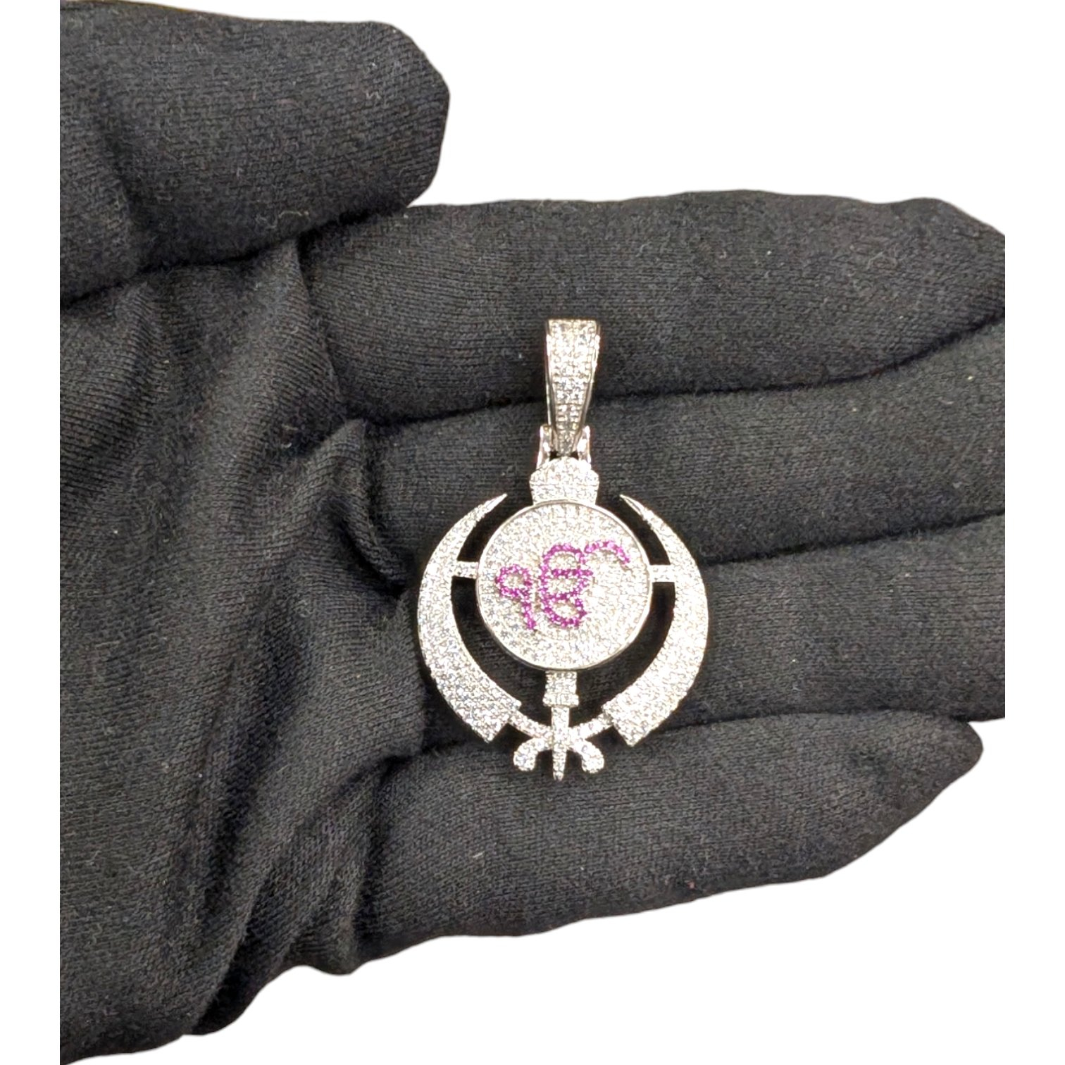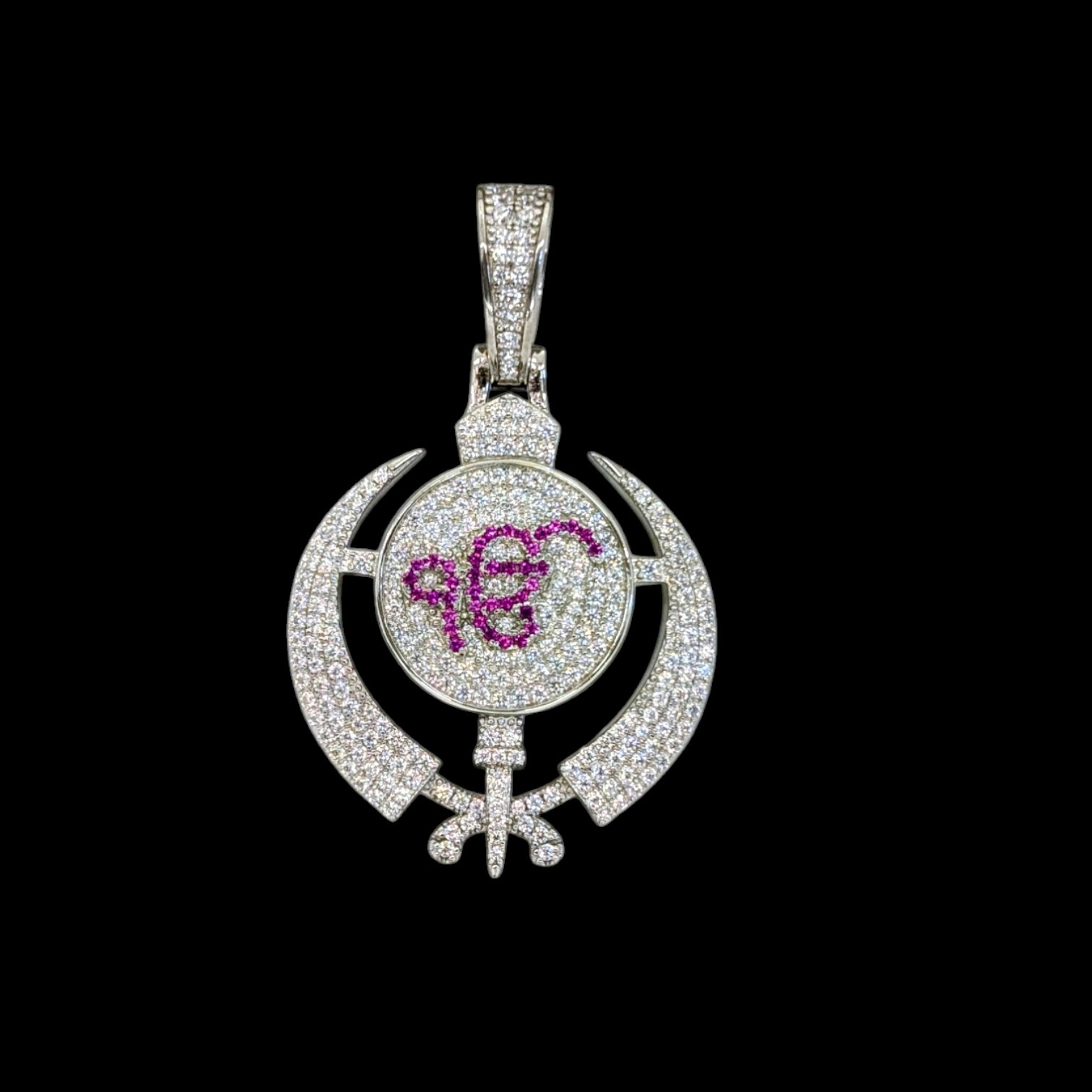 Bold Design: IK onkar colored by red CZ diamonds the combination of red and white makes this pendant design stand out and unique.