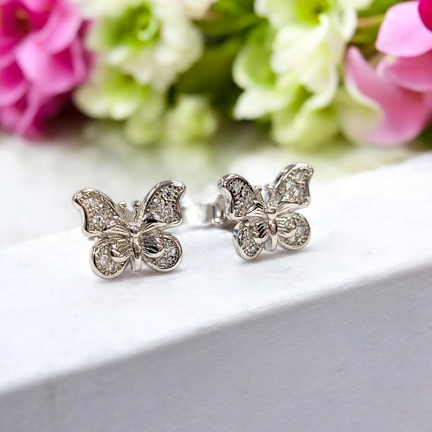 These butterfly stud earrings are made of 925 sterling silver metal in great polish and rhodium plated which is 100% lead free, nickel free and hypoallergenic for sensitive ears. These stud earrings will not cause allergies despite how long you wear. Flat and smooth bottom design makes earrings lie flat on your ears. Comfortable and light.