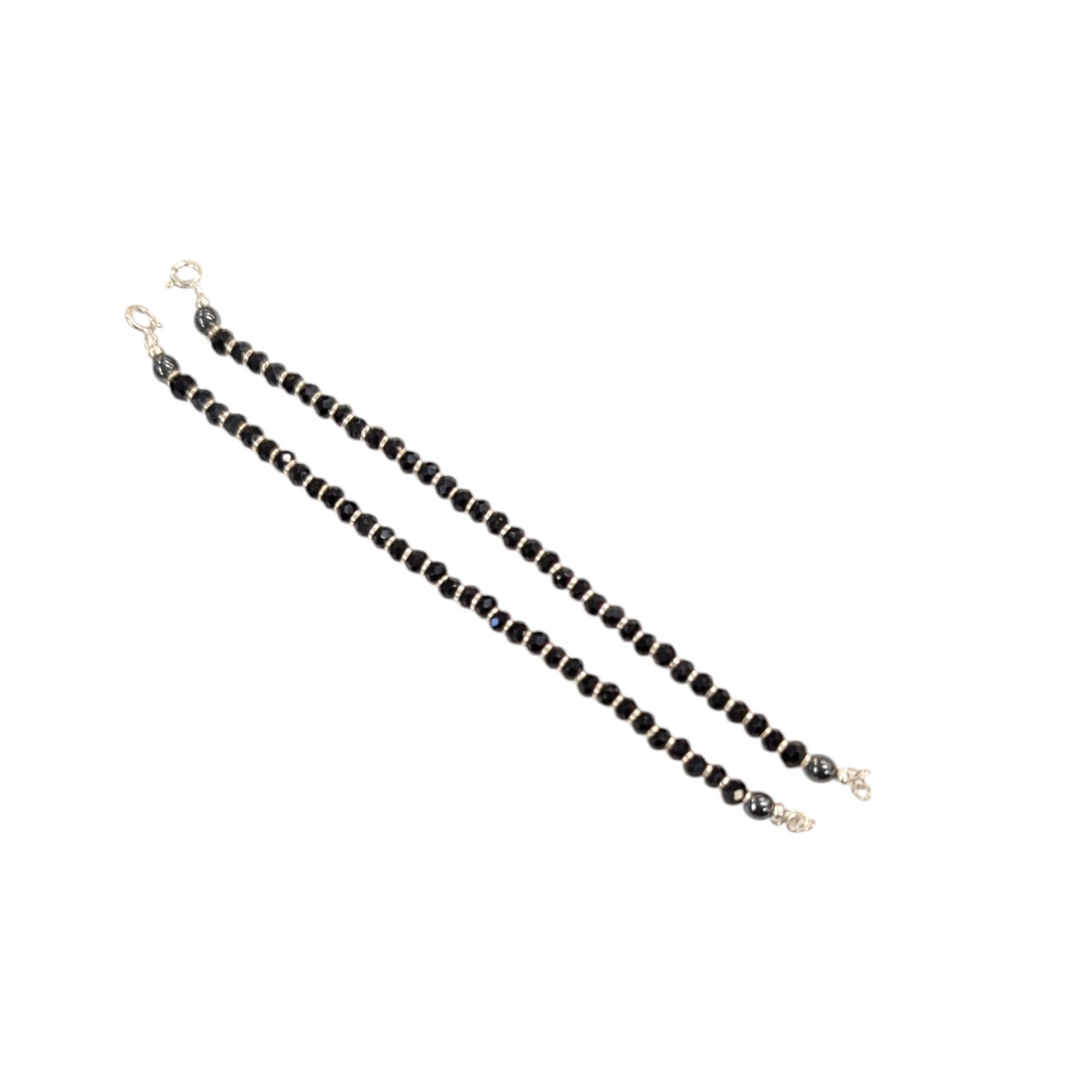 Embrace tradition and elegance with this Sterling Silver Nazaria chain Bracelet, designed for infants. Featuring a chain bracelet with pure silver rings placed between black glass beads, this piece blends cultural significance with modern sophistication.