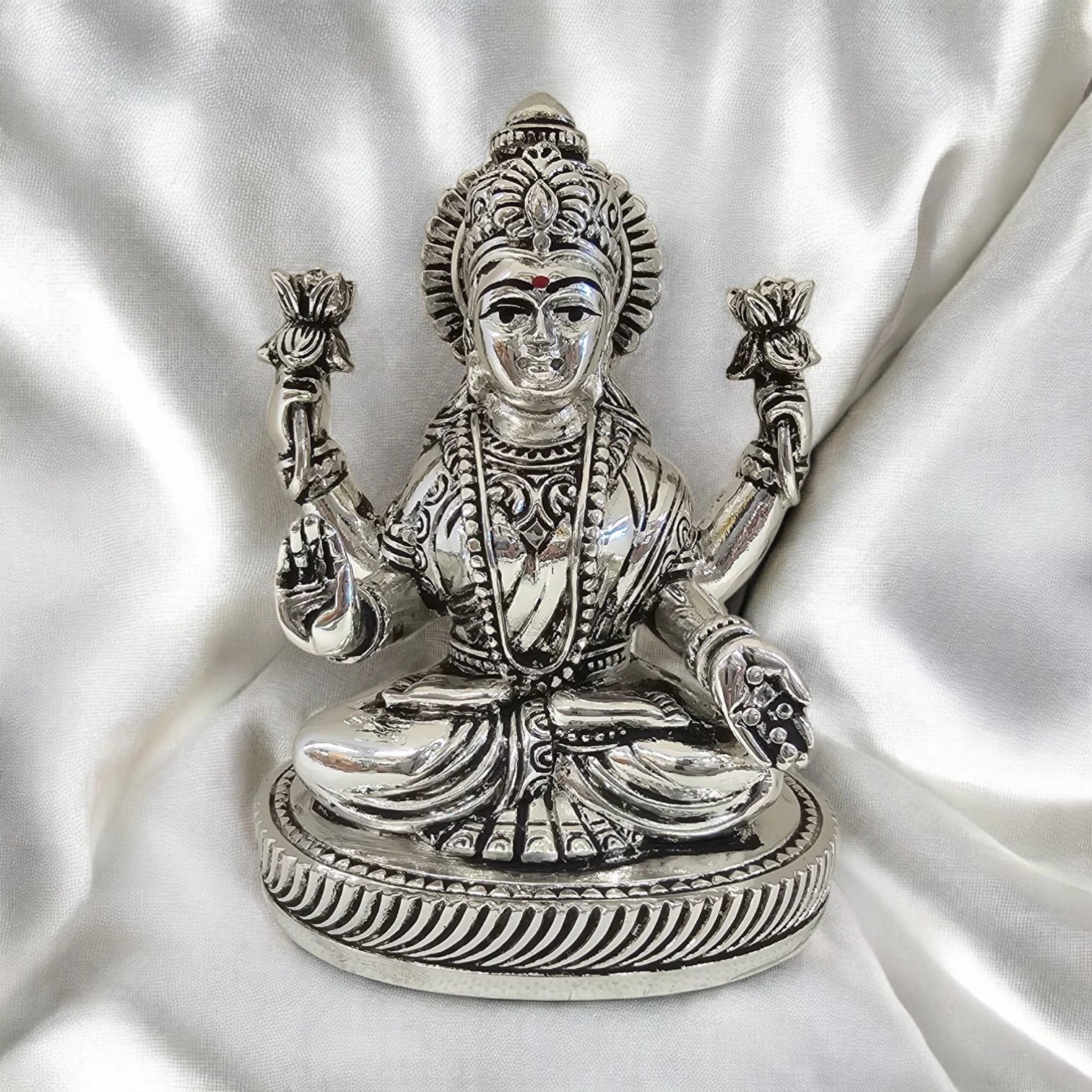 Silver Plated Lakshmi – 4 inches | Silver Oxidized finish