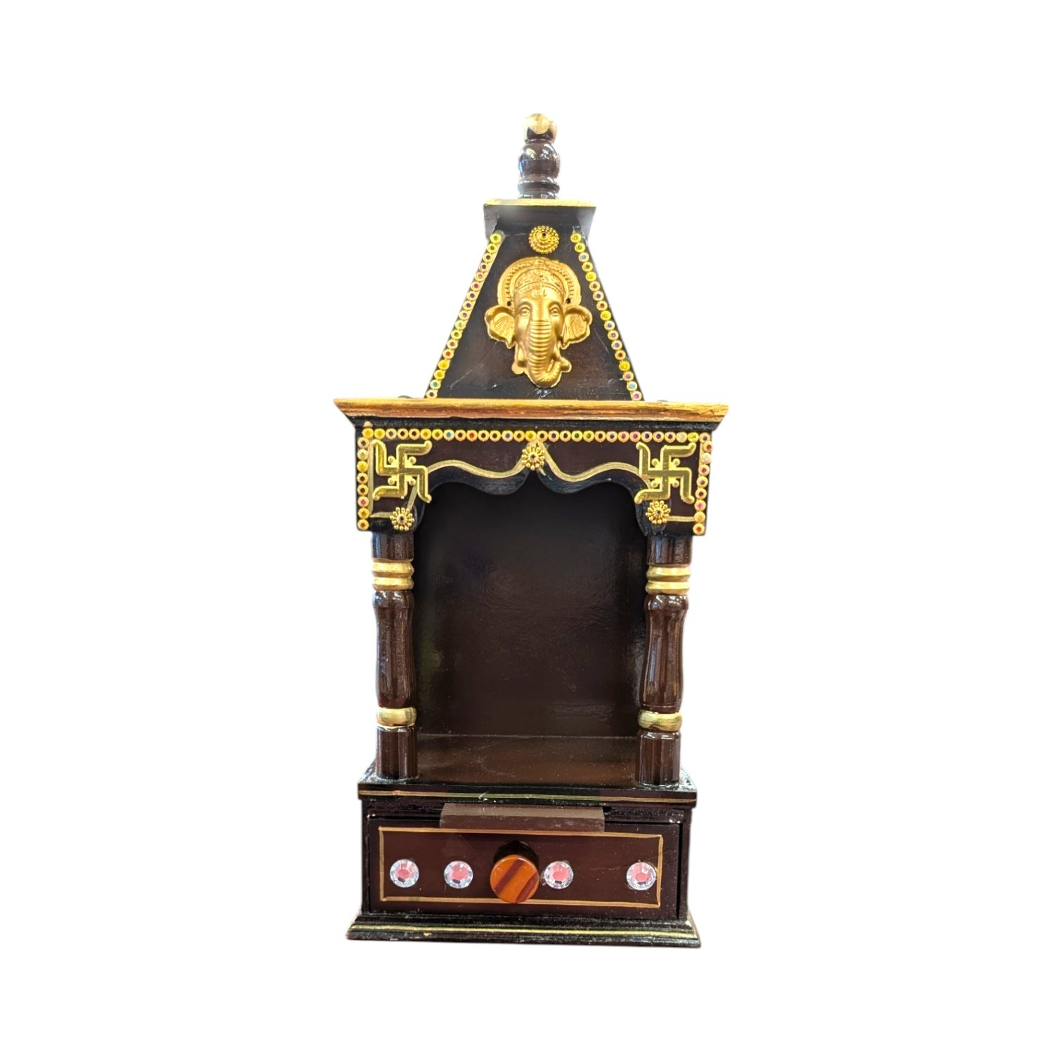 Buy this beautifully crafted Small Wooden home Temple, perfect for your home mandir. Made from high-quality wood, this temple features the traditional dark brown finish, enhancing your spiritual space with elegance and tranquility. Ideal for daily prayers and meditation.