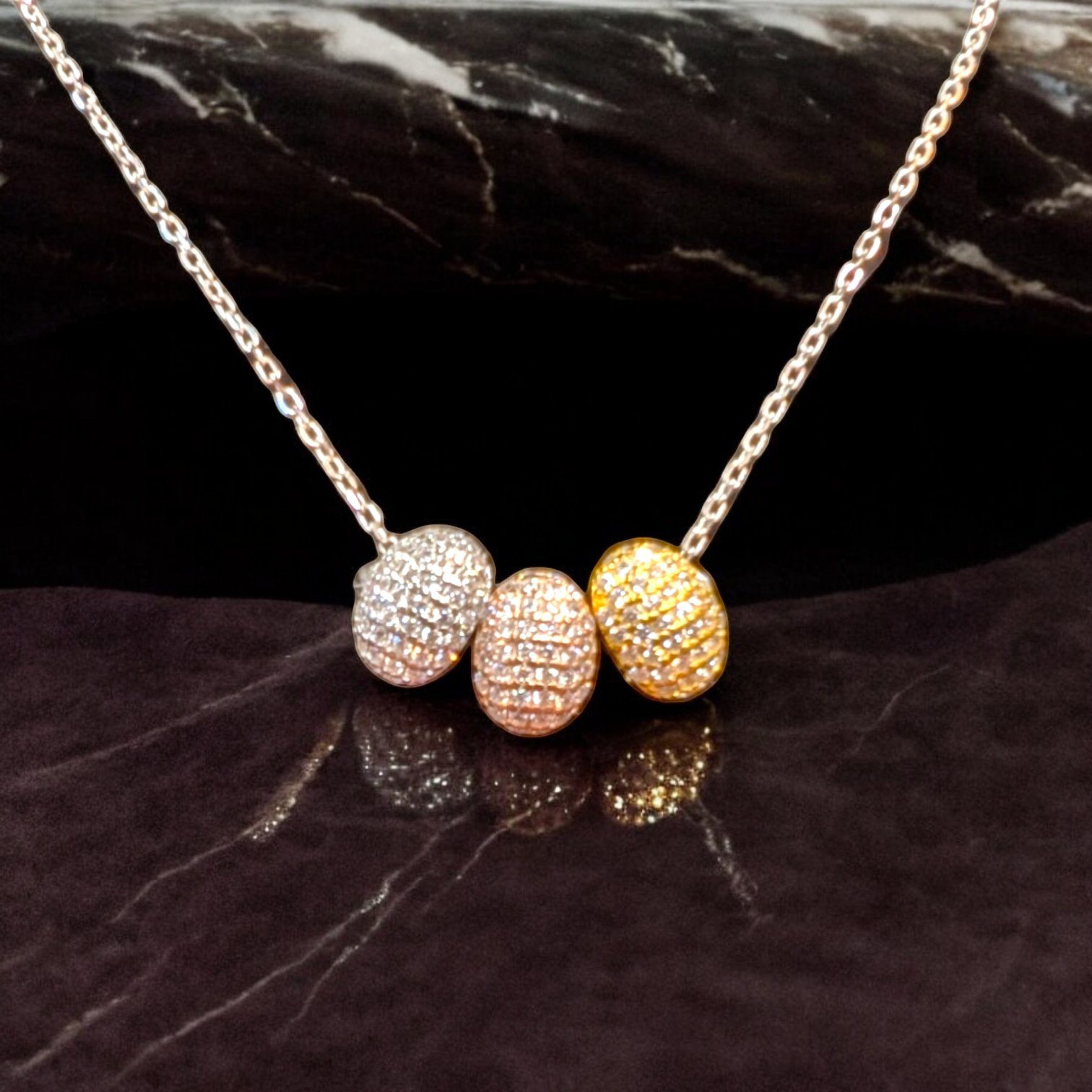 Elevate your style with this exquisite pure silver three-shade pendants on a sterling silver 925 chain, a perfect blend of elegance and sophistication. Designed to complement any look, this timeless accessory adds a touch of glamour to your outfit, whether for casual wear or special occasions.