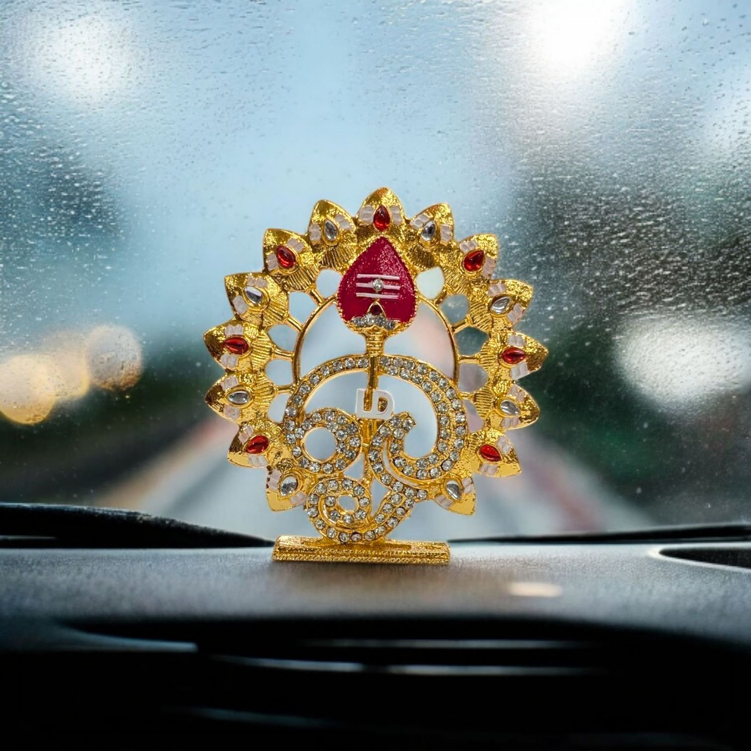 Enhance your space with the Tamil Om Idol, a stunning combination of craftsmanship and spirituality. Designed with exquisite attention to detail, this metal statue adorned with stones and 24K gold plating is a timeless showpiece, perfect for your car dashboard, home, or office.