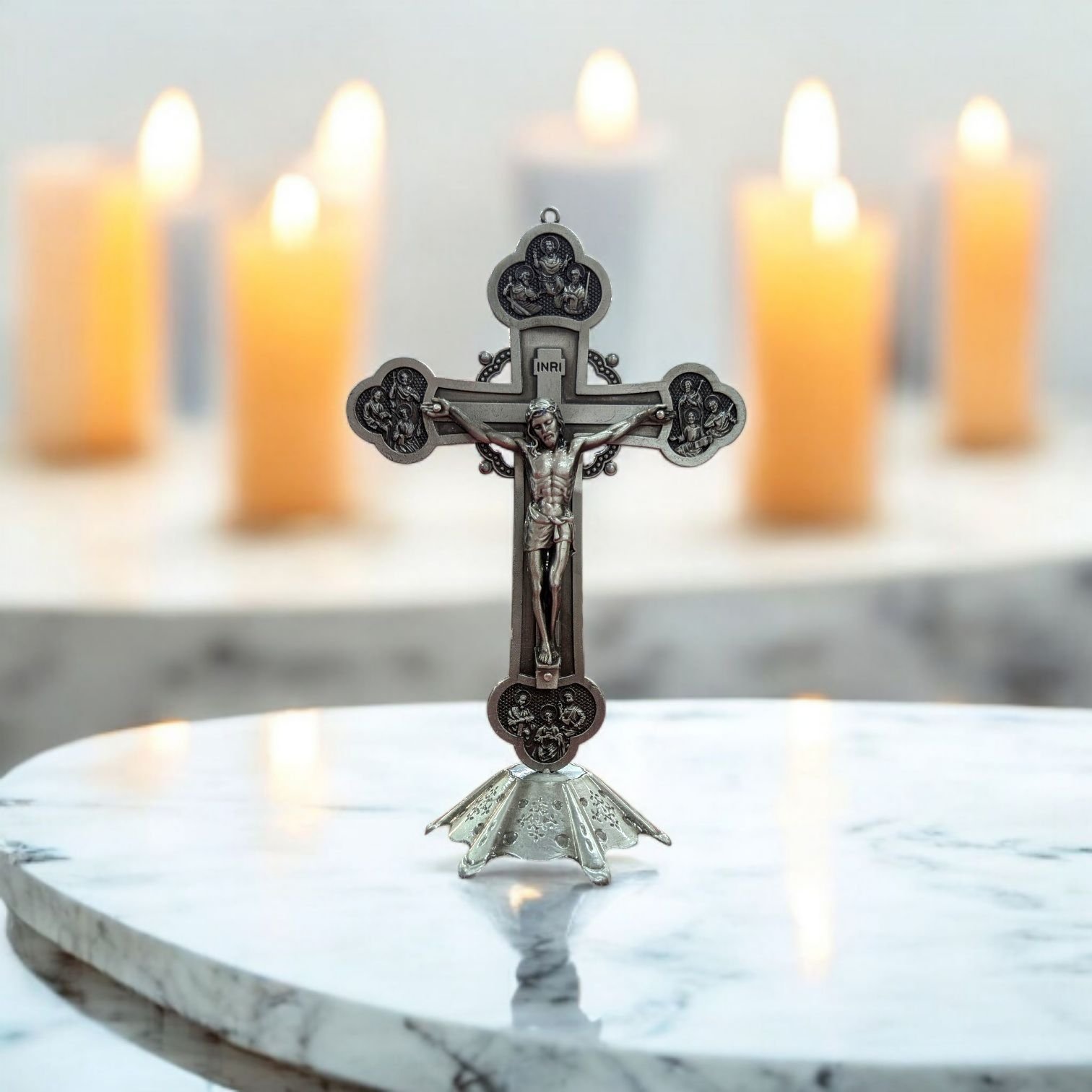 Religious cross can stand on tabletop altar, fireplace mantel, cabinet decor, or they can be detached from the base. The appropriate size is suitable for hand-held prayer to Jesus.