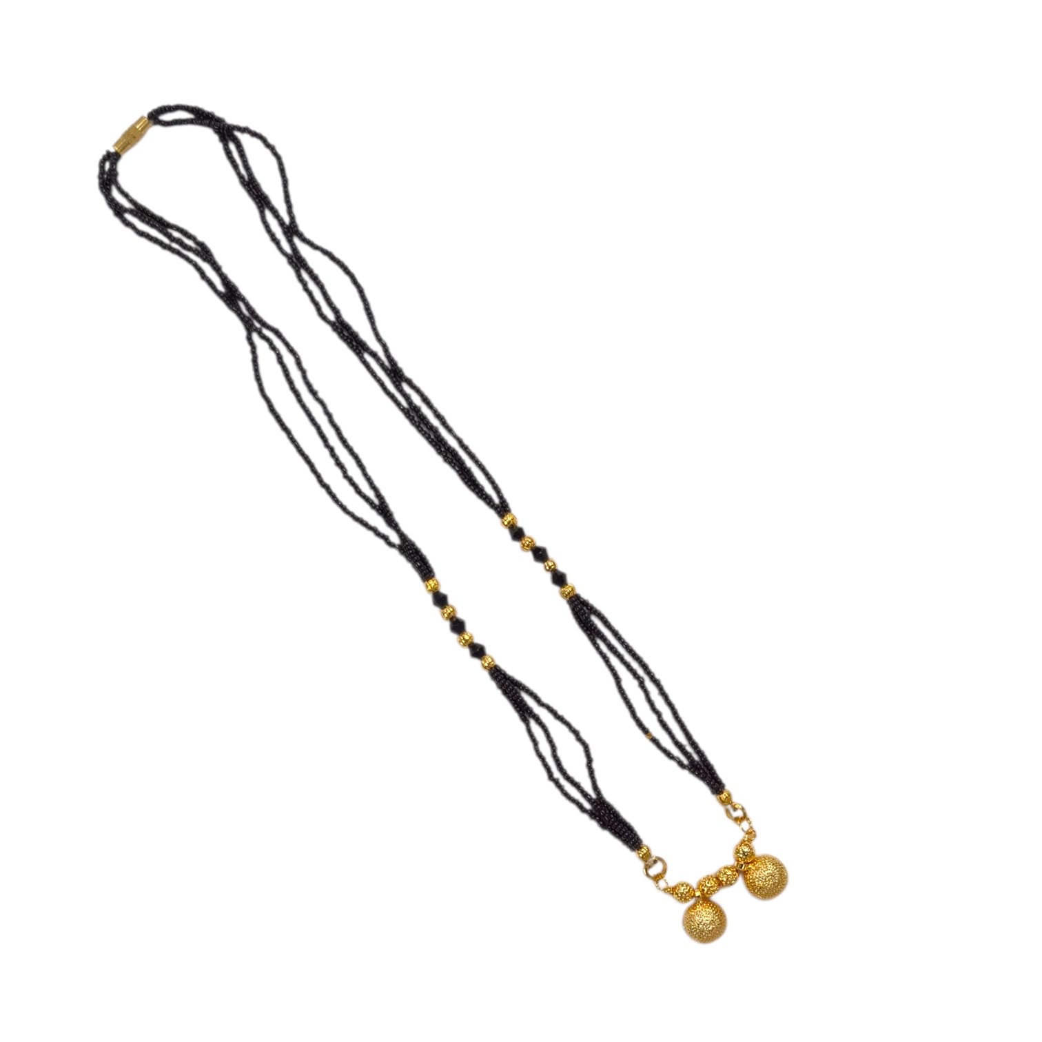 The necklace is adorned with a finely beaded triple-line chain made from durable black beads, symbolizing protection and marital strength. Its lightweight and comfortable design ensures ease for all-day wear without compromising on style.