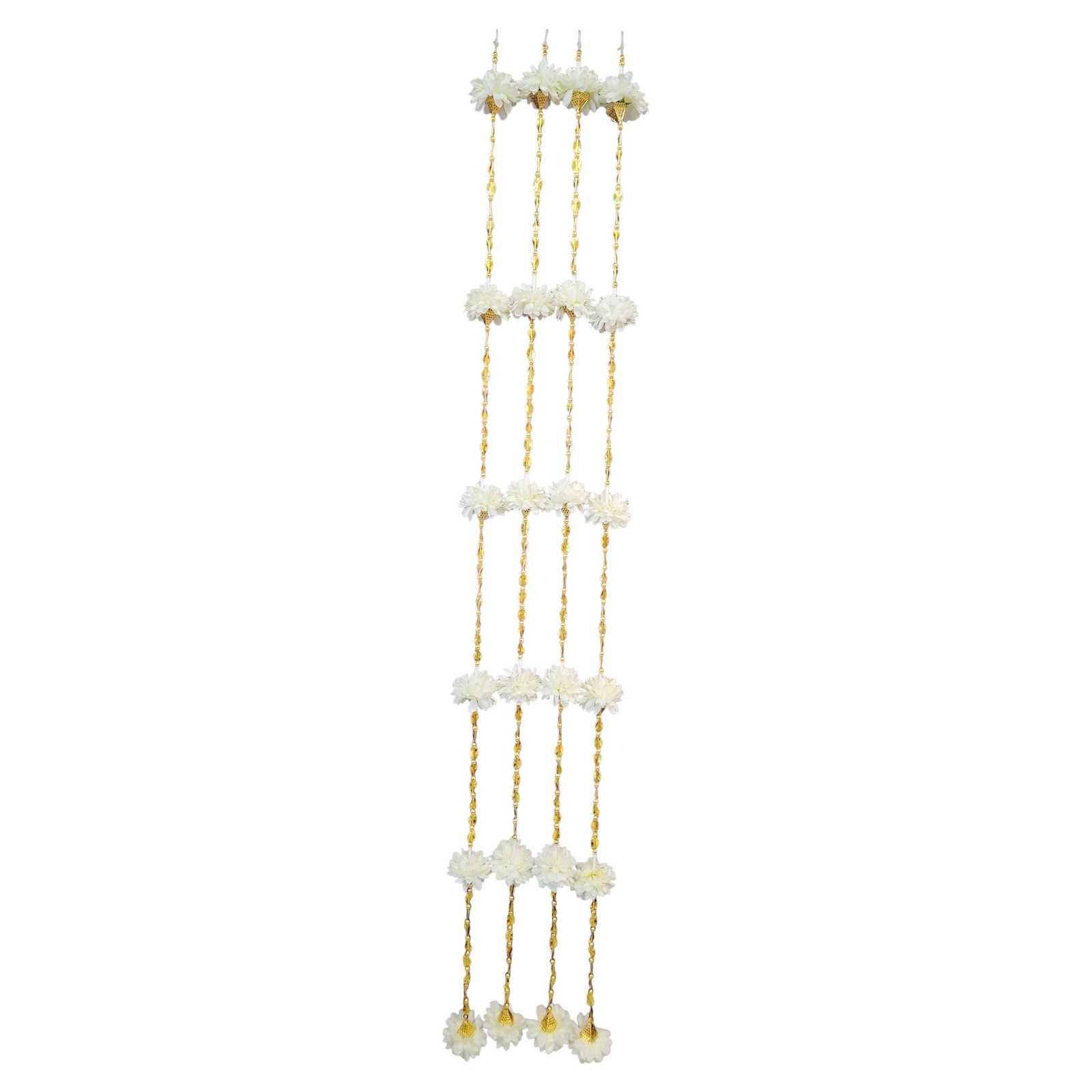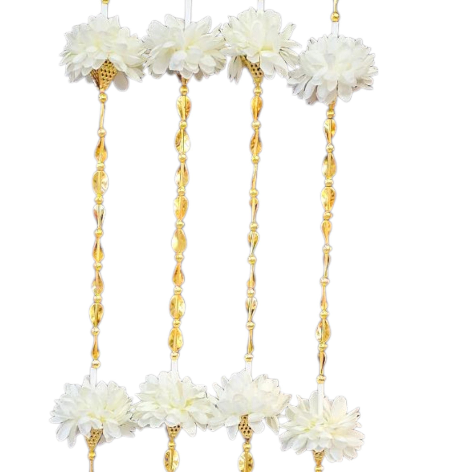 Elevate your festive decor with these vibrant Artificial flower strings in white with gold . Perfect for adding a touch of tradition to your celebrations, these flower garlands are ideal for decorating homes, offices, and public spaces during Diwali and other auspicious occasions.