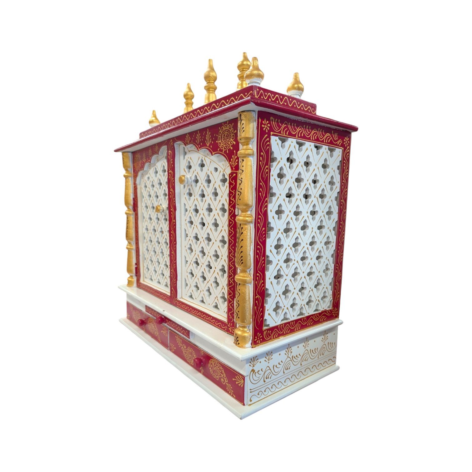 Wooden Mandir for Home | Rajasthani Red & Golden Hand-Painted with LED Lighting – 24 inch
