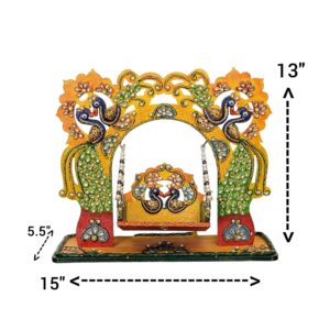Its compact yet ample size makes it ideal for housing your idols, ensuring a peaceful, dedicated space for worship. The solid wood construction not only guarantees durability but also adds a timeless elegance, showcasing intricate hand-painted details that reflect the rich heritage of Rajasthani craftsmanship.