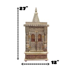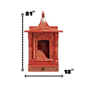 Its compact small size makes it ideal for housing your idols, ensuring a peaceful, dedicated space for worship. The solid wood construction not only guarantees durability but also adds a timeless elegance, showcasing intricate hand-painted details that reflect the rich heritage of Rajasthani craftsmanship.