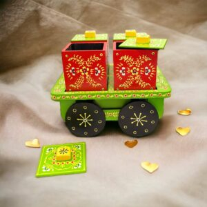 Wooden Hand Painted Dry Fruit/ Jewelry Box/Cart-Red green