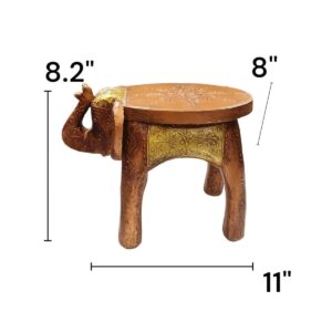 Hand Painted Elephant Wooden Stool Showpiece -Brown
