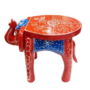 Hand Painted Elephant Wooden Stool Showpiece -Red