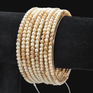 Gold Plated Pearl Bangles Set-8143